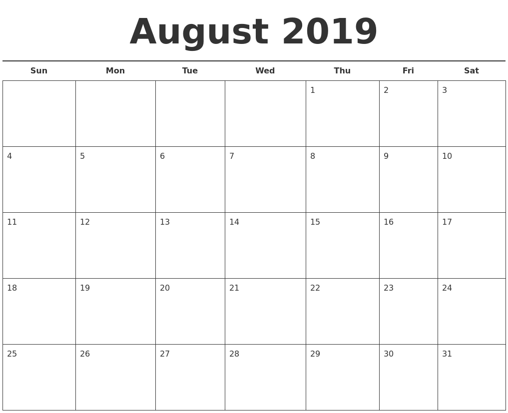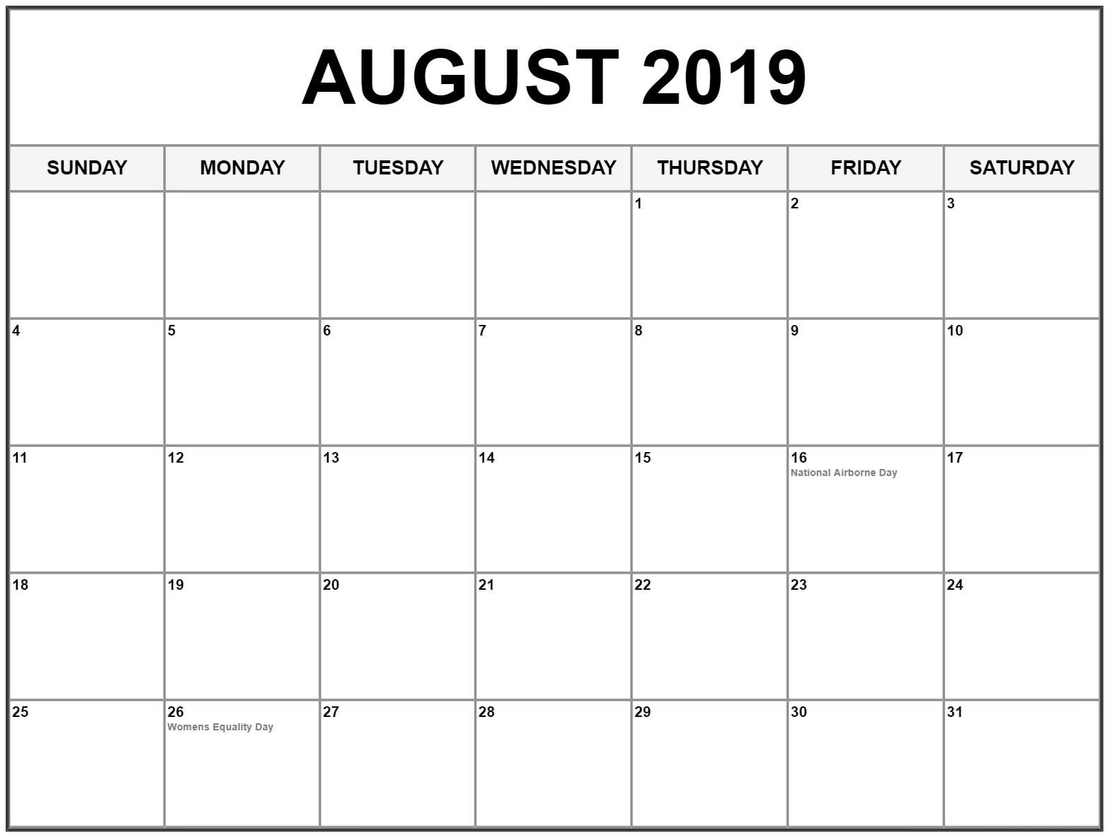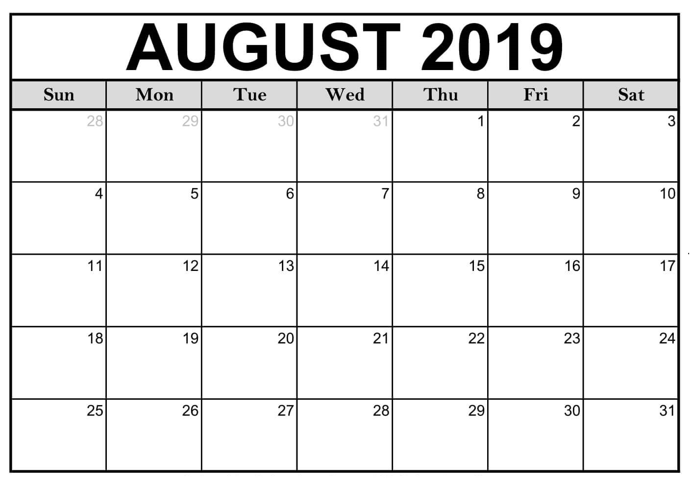 Printable August Calendar 2019