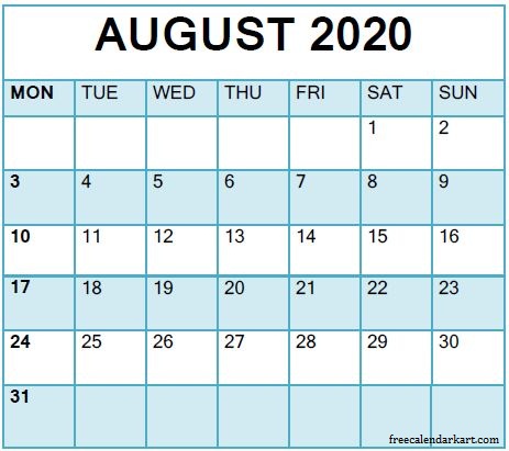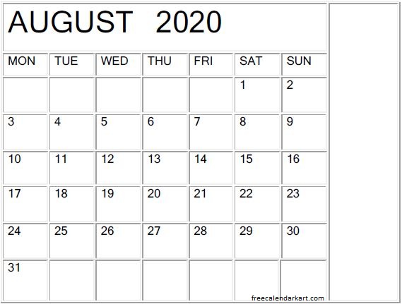 August 2020 Calendar Template In Word, Excel, and PDF