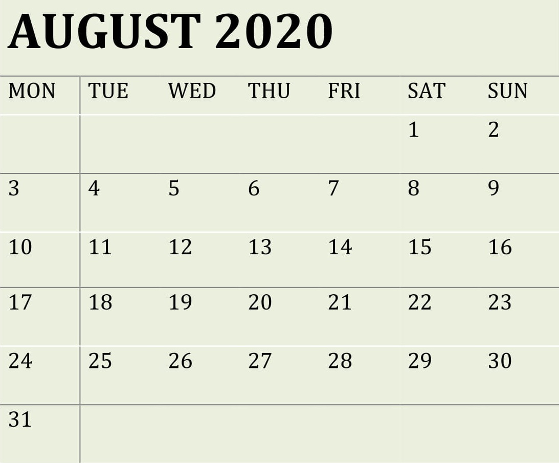 Calendar For August 2020 Calendar