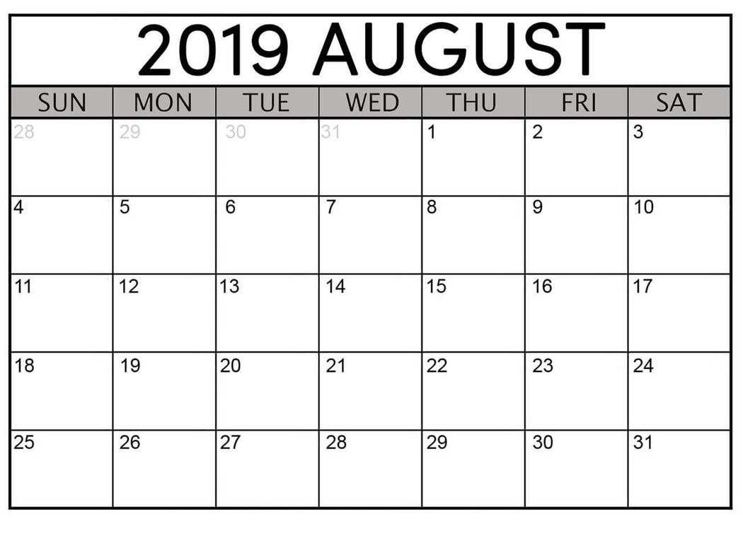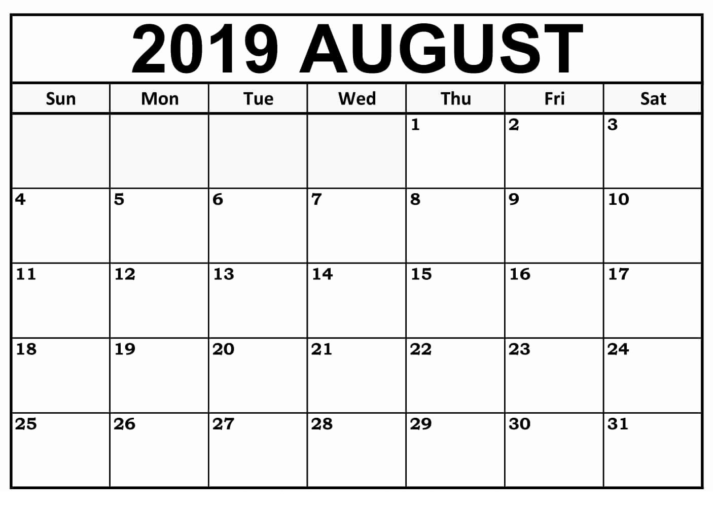 Blank August Calendar 2019