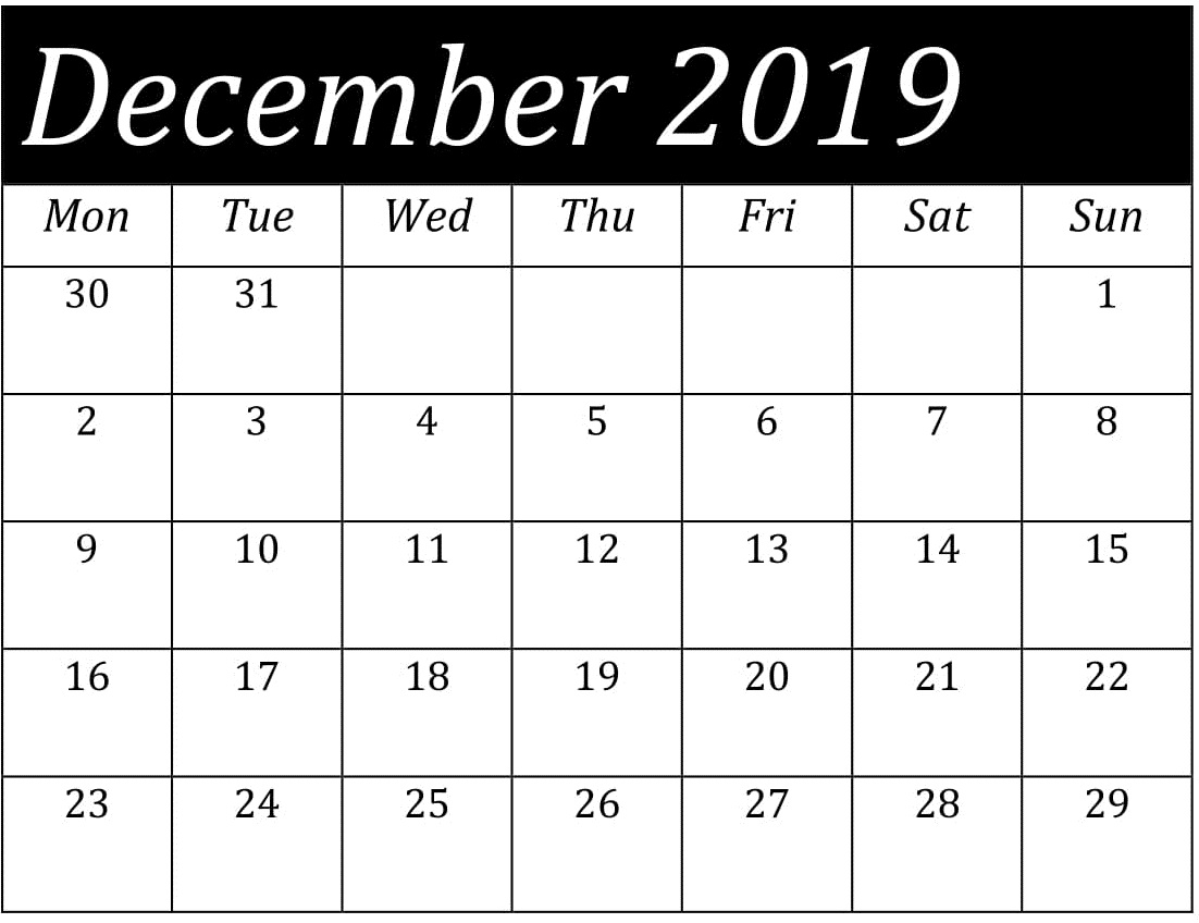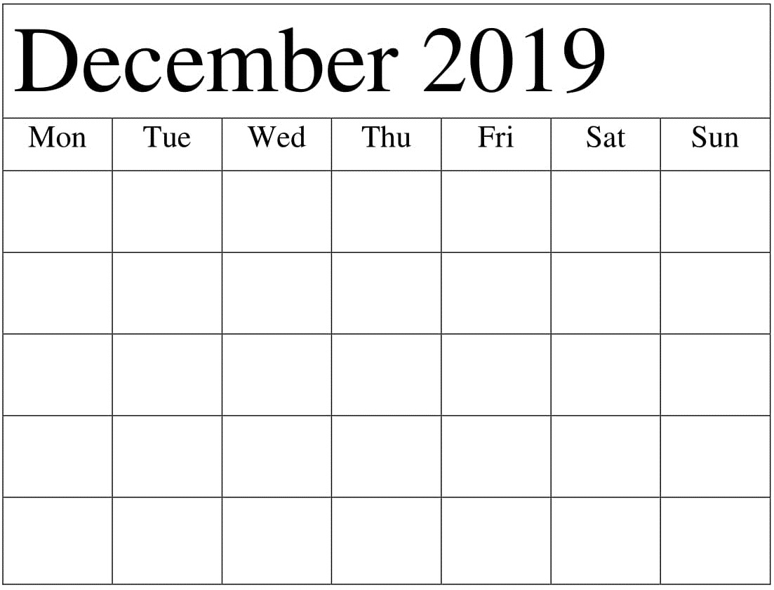 Blank December 2019 Editable Monthly CalendarBlank December 2019 One Month Calendar PagesBlank December 2019 Weekly Calendar PrintoutPrintable Blank December 2019 Calendar Planner