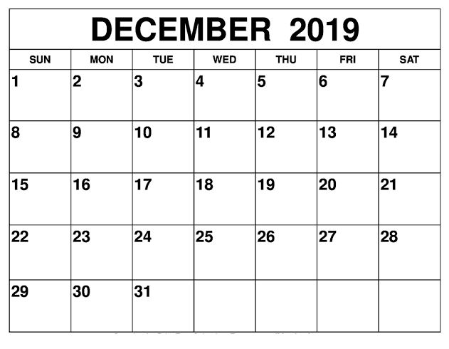 Blank December Calendar 2019