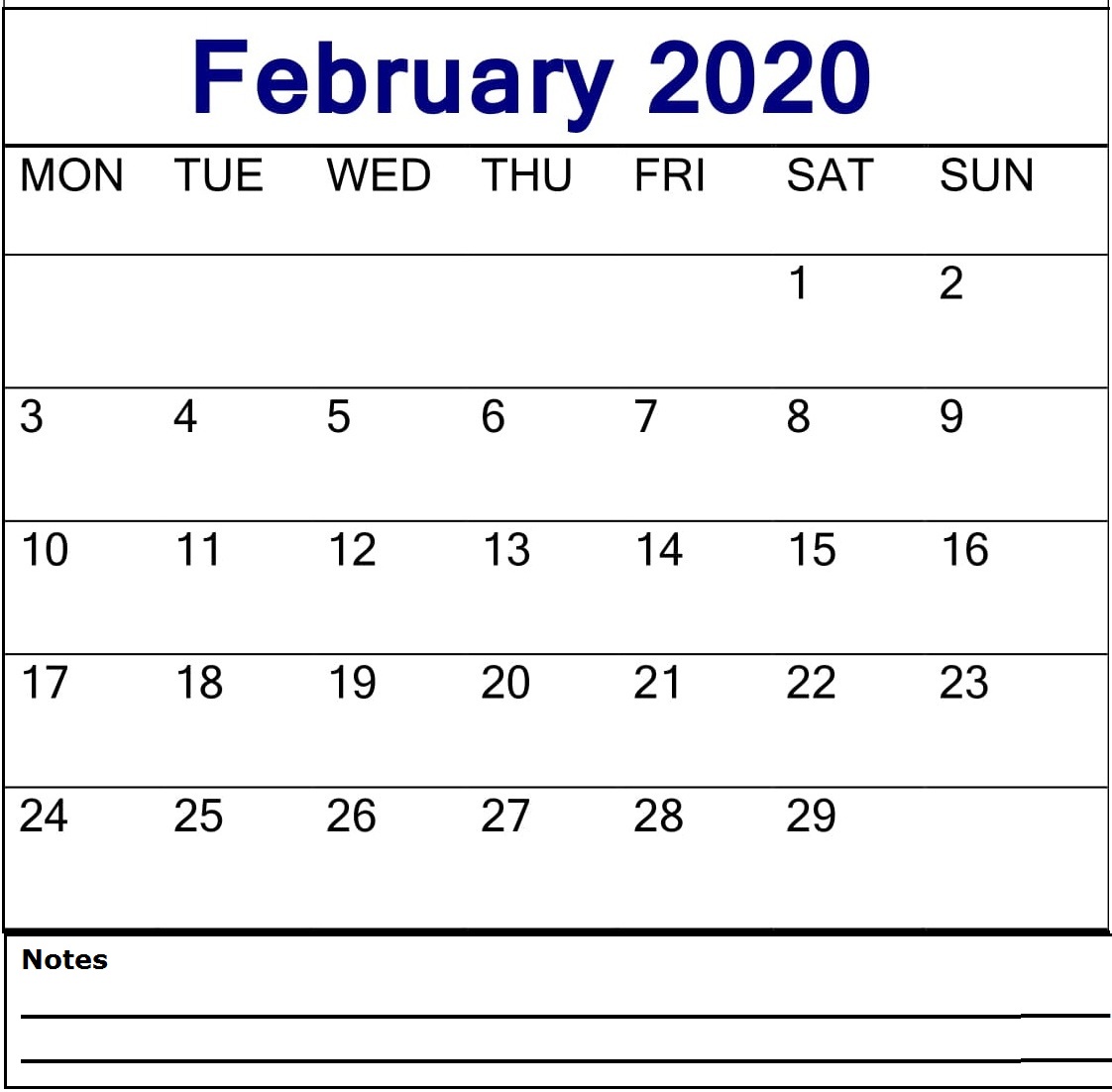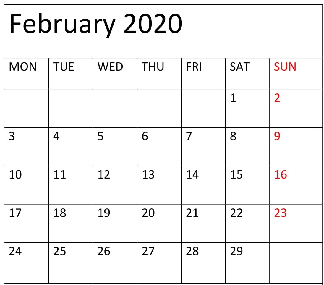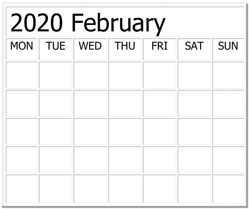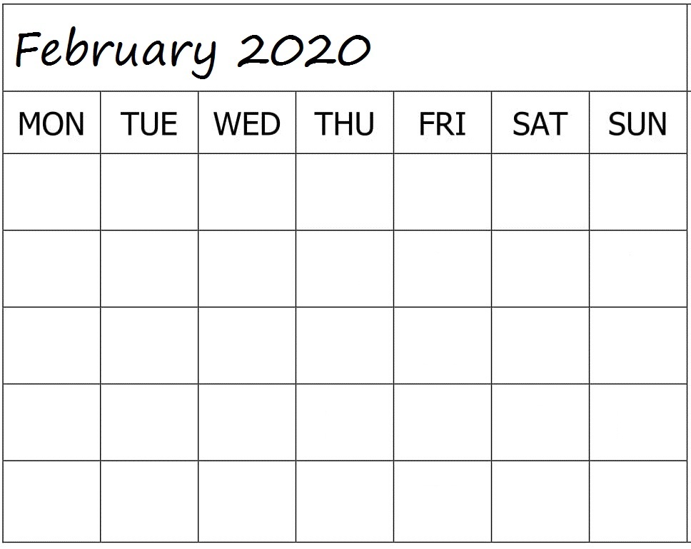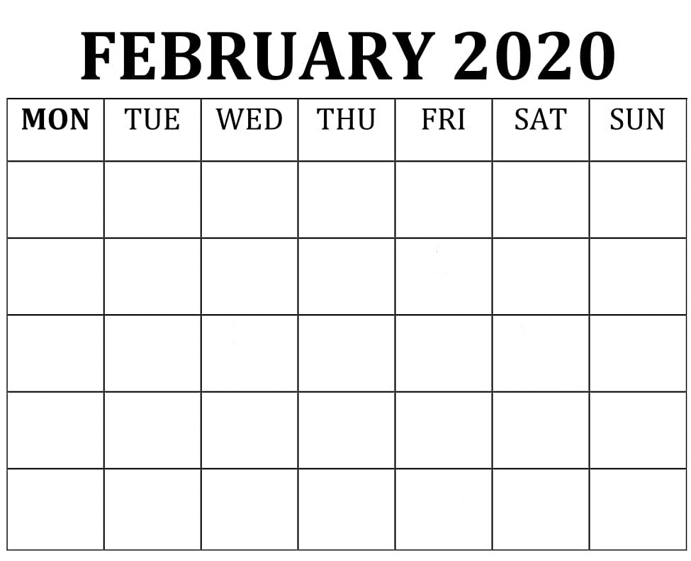 Blank February 2020 Calendar