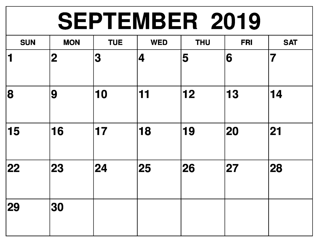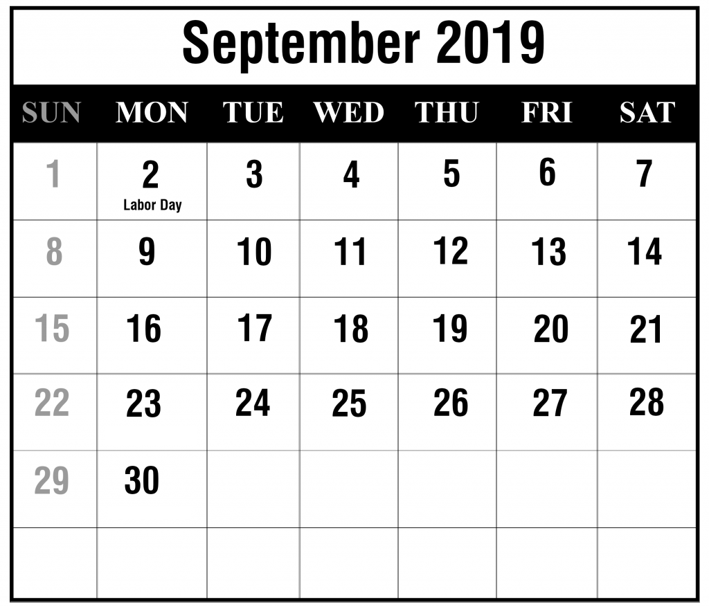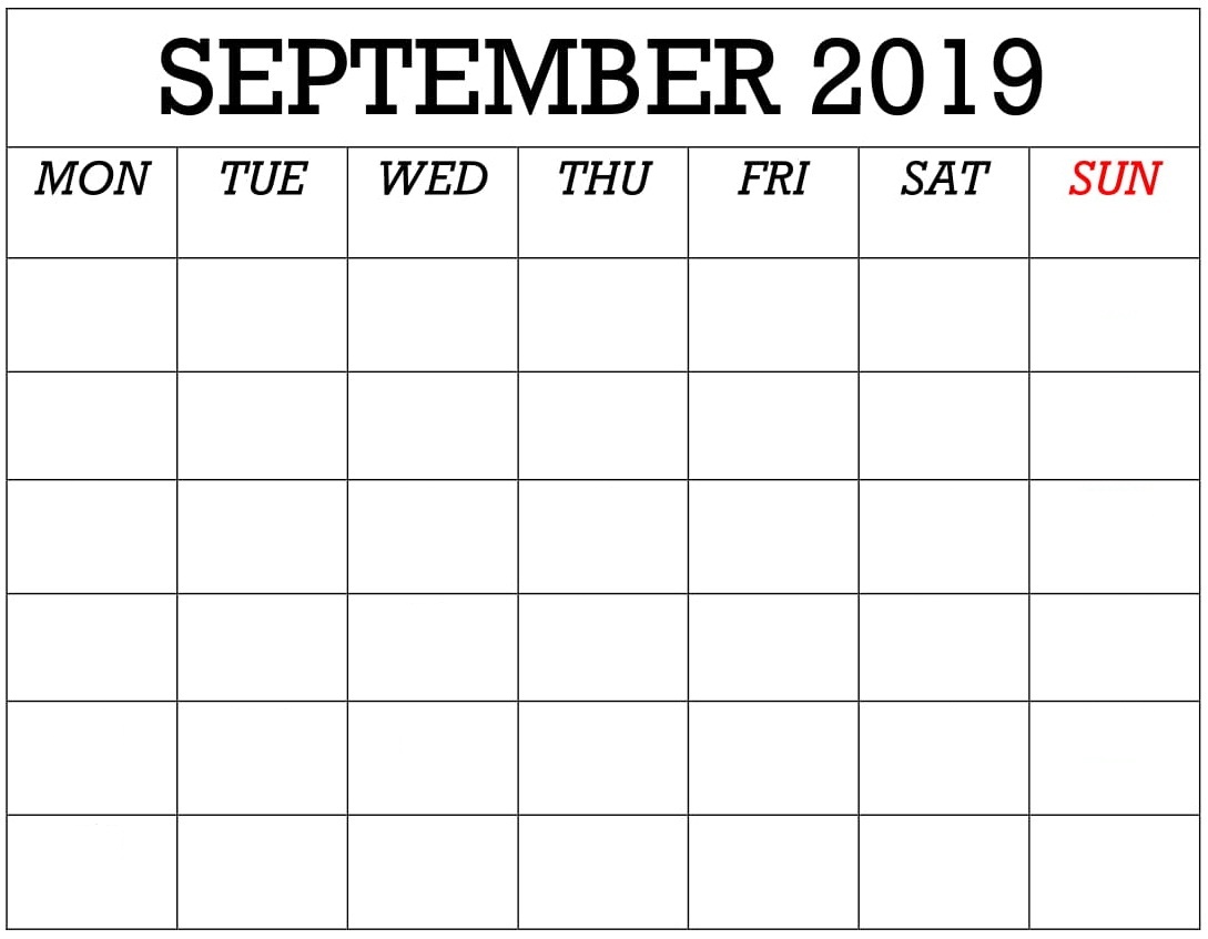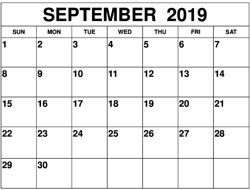 Blank September 2019 Calendar