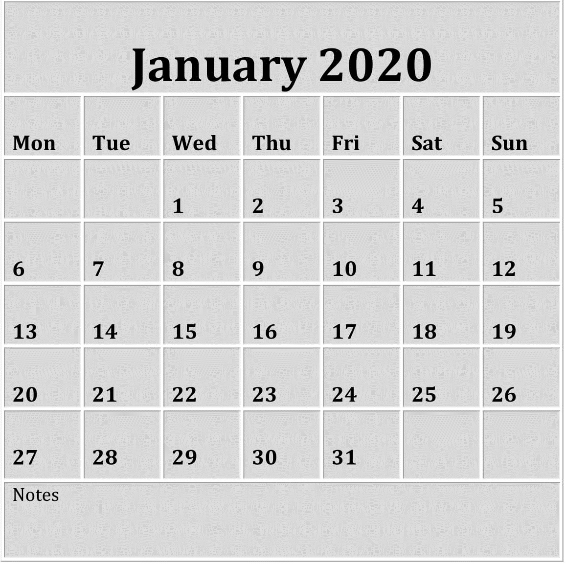 Calendar For January 2020 Excel Format