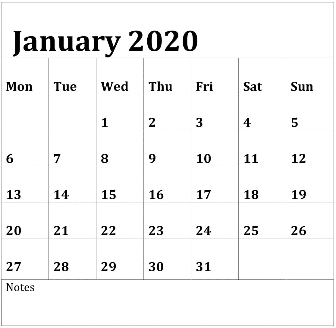 Jan 2020 Calendar