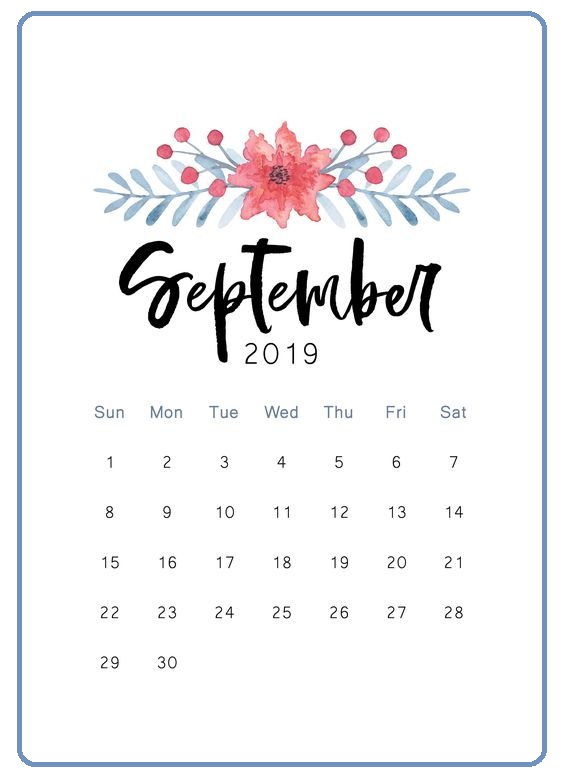 Cute September 2019 Calendar