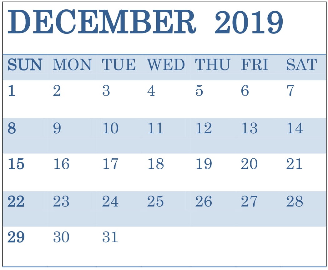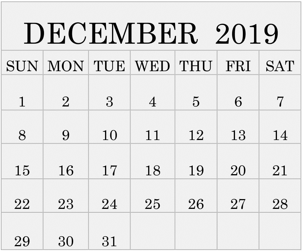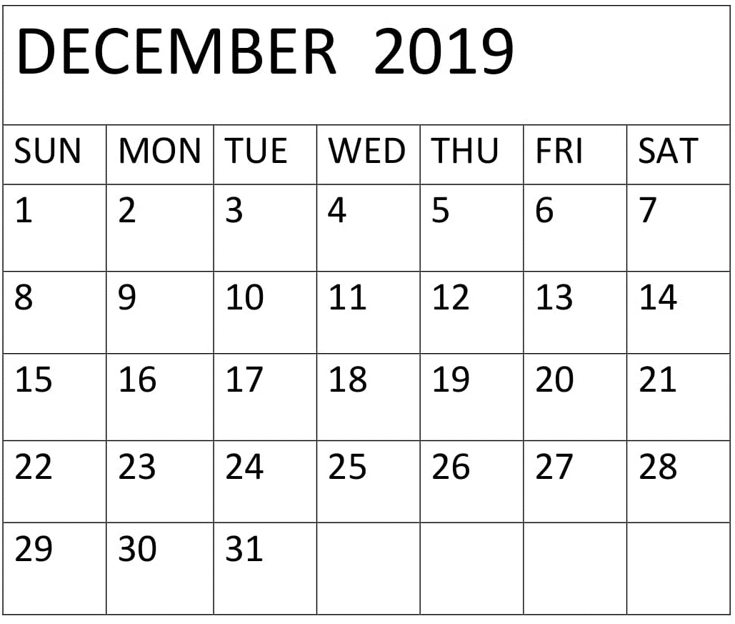 December 2019 Calendar Printable Free Download