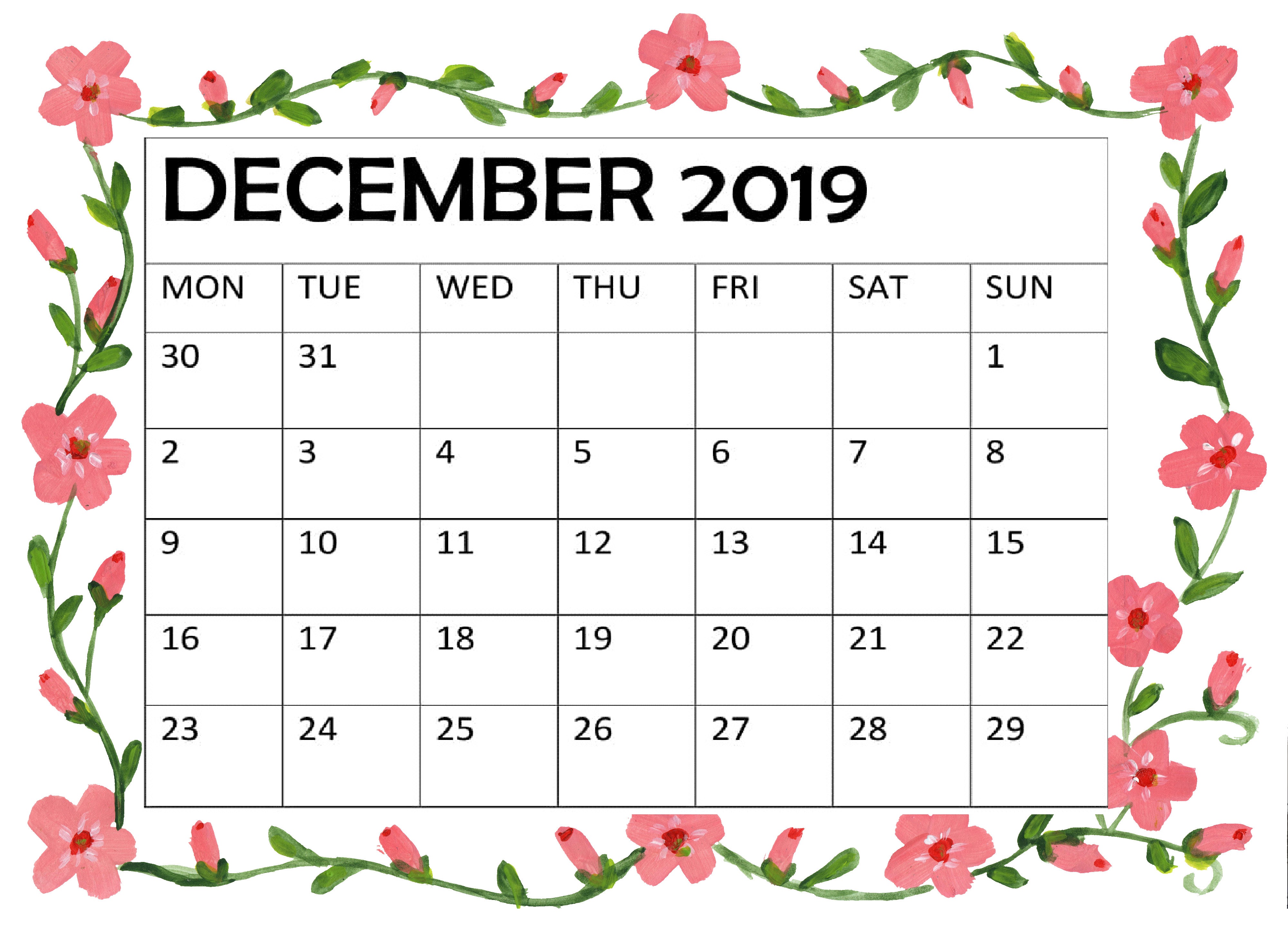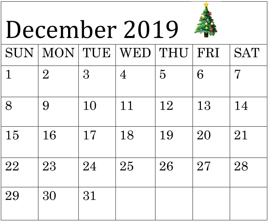 December 2019 Calendar Printable