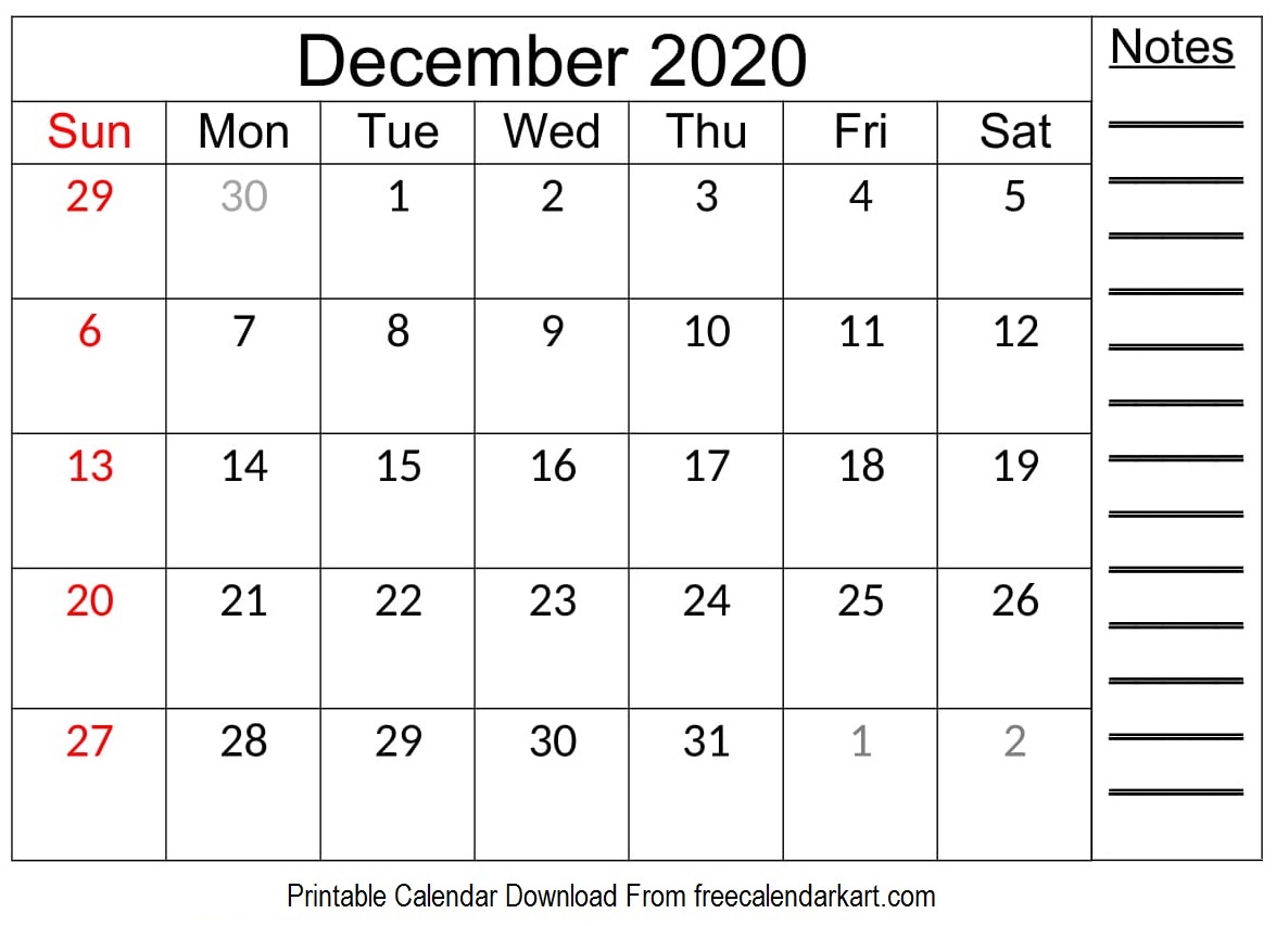 Printable December 2020 Calendar can be downloaded from the links given here and is free. You need not pay any amount to download the same. You can use it digitally or as a paper calendar. Again, using digital or otherwise is a subjective matter. The Calendars have been designed in such a way that it is easy to use and understand for a layman. Further, it has sufficient space for personal noting/remarks.