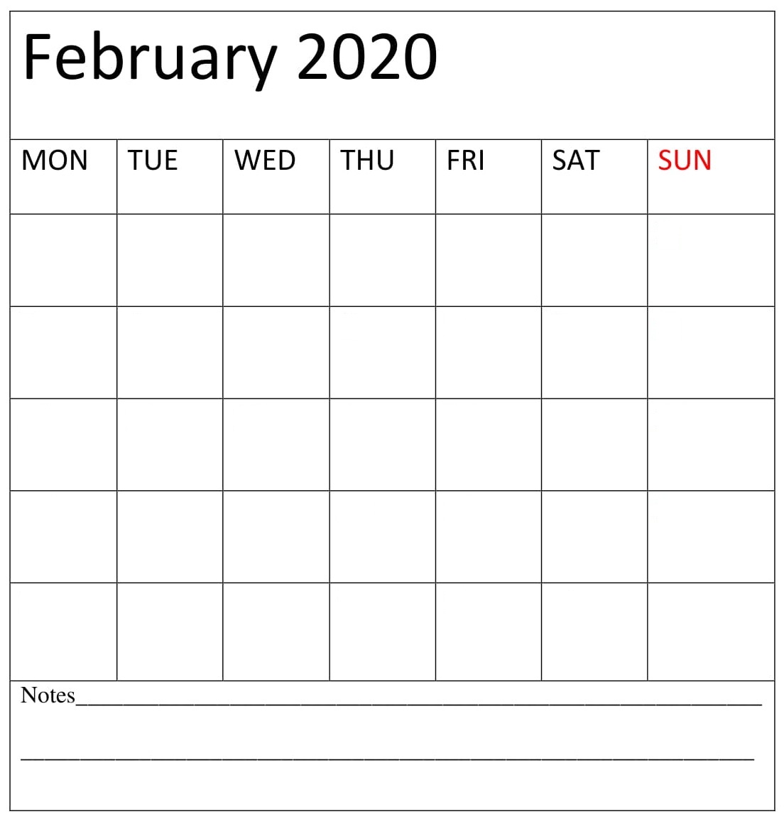 February 2020 Blank Calendar