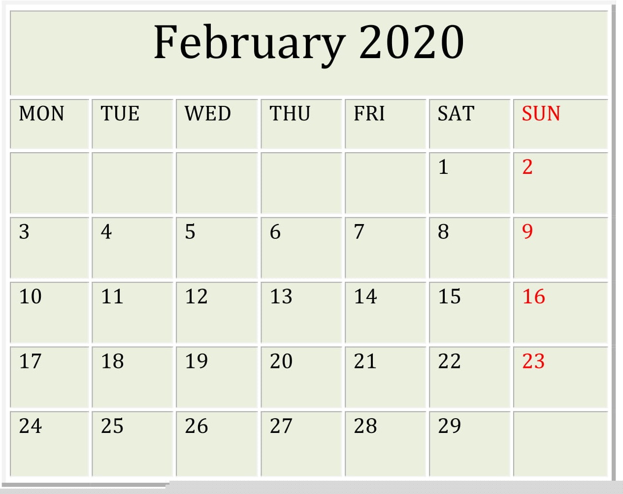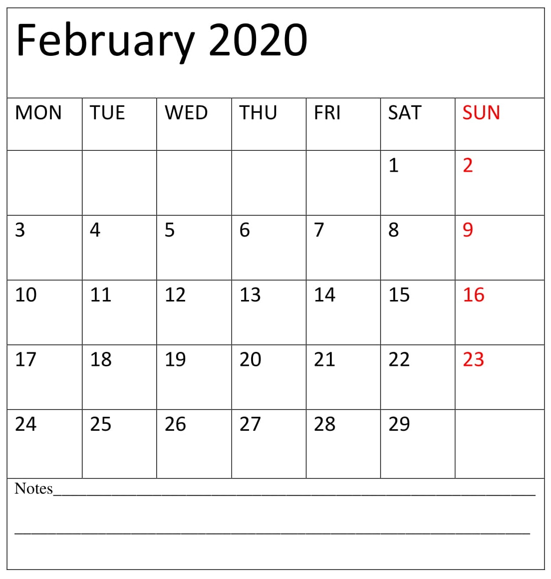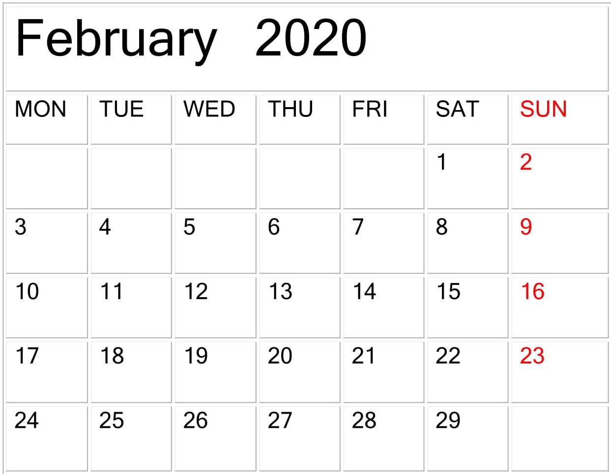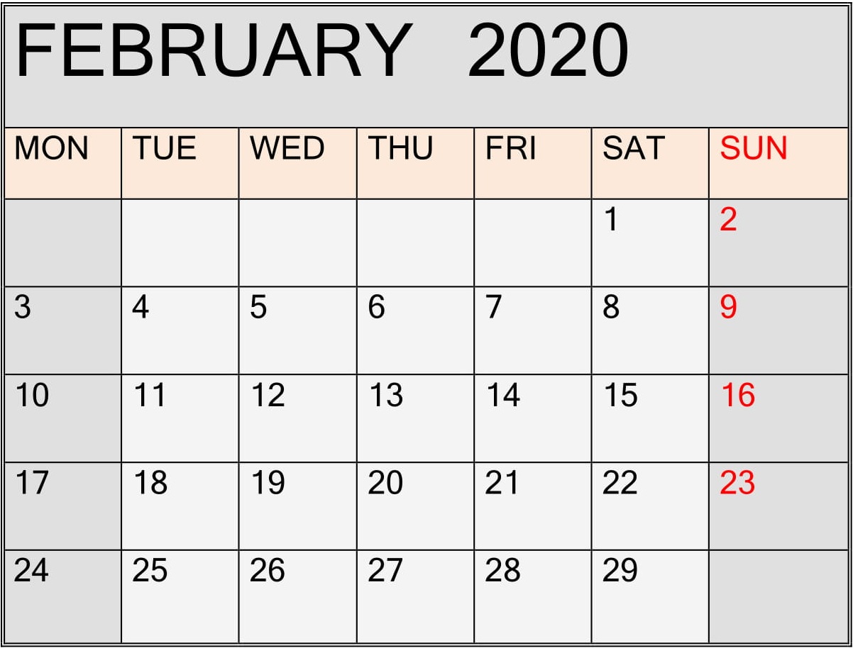 February 2020 Calendar Template