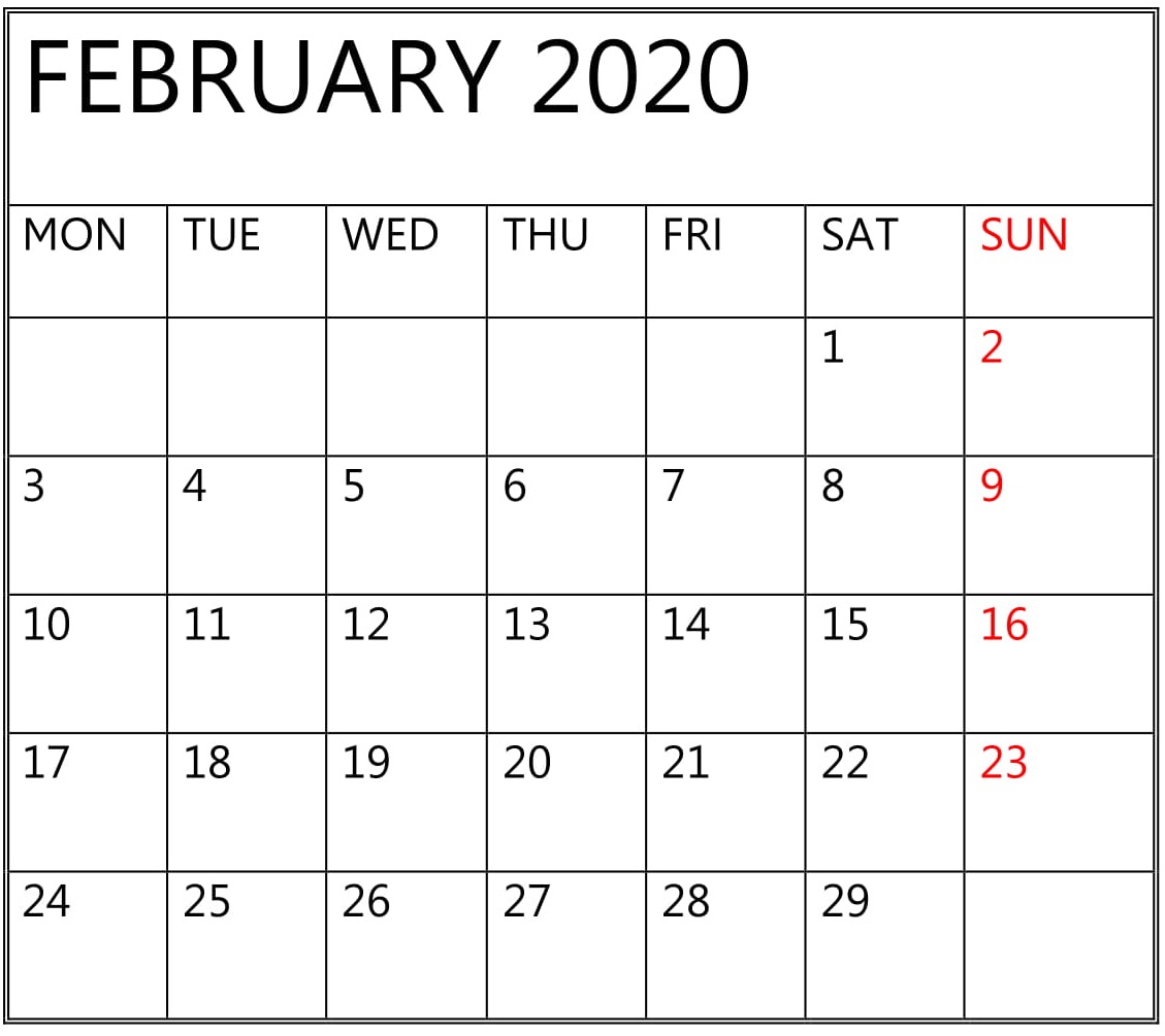 Free Printable February 2020 Calendar Editable Format