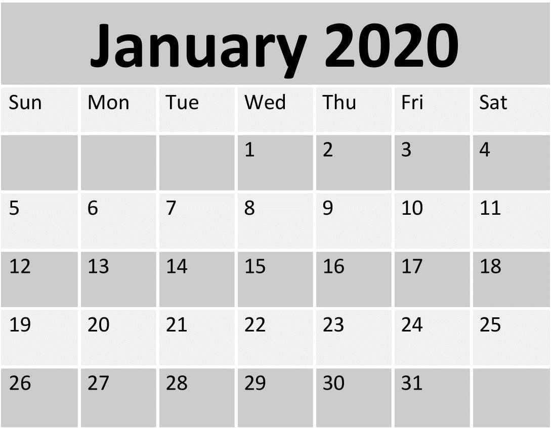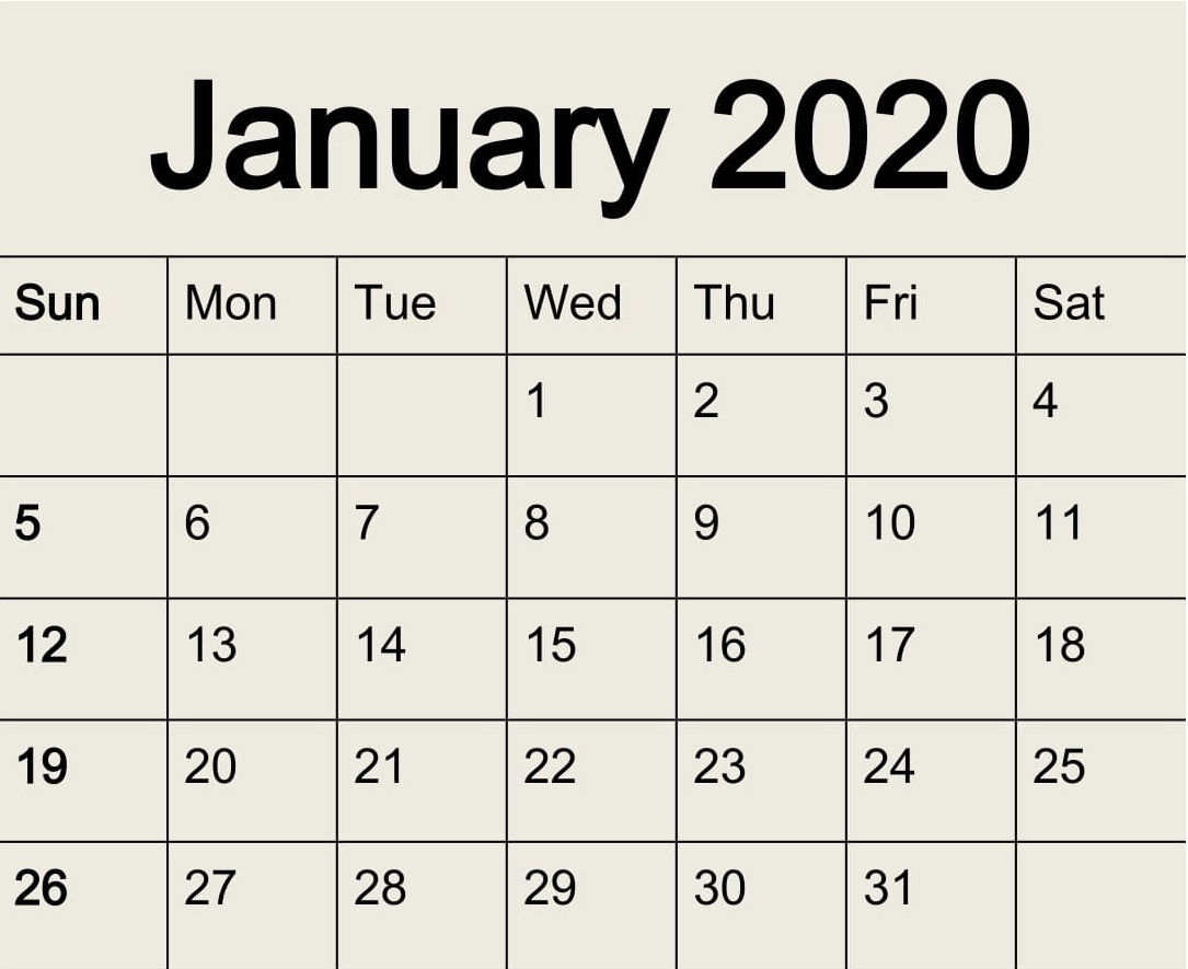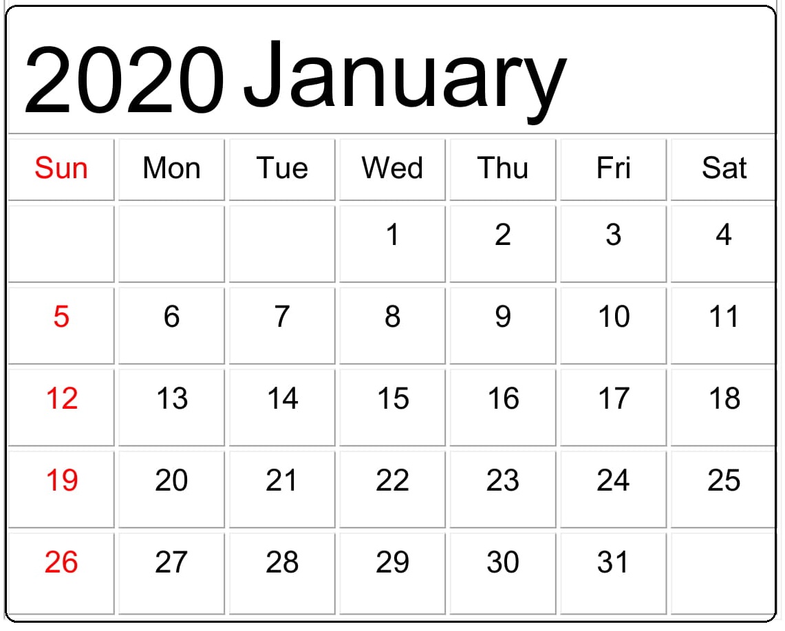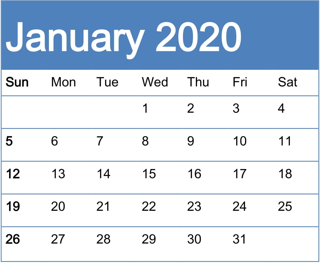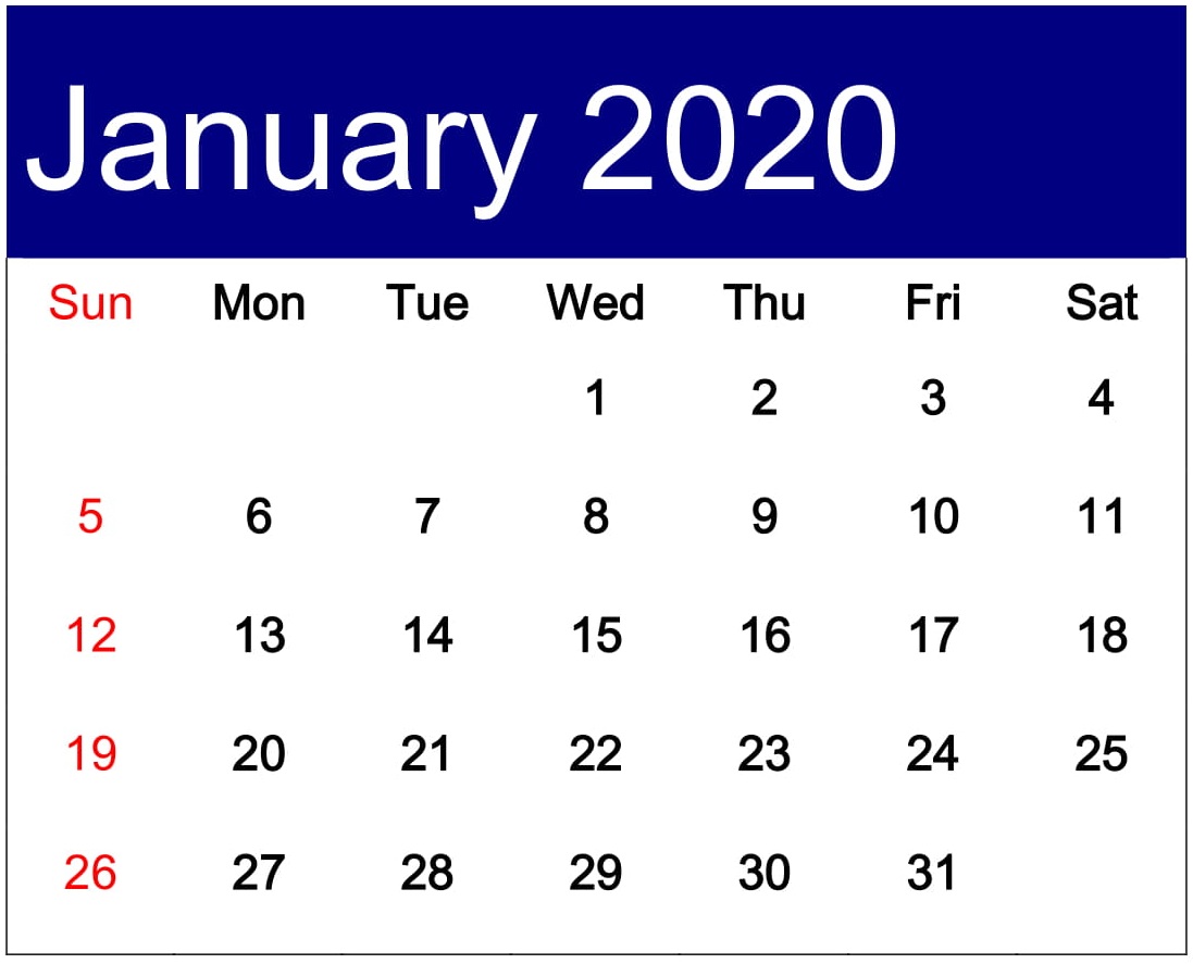 Free Printable January 2020 Calendar