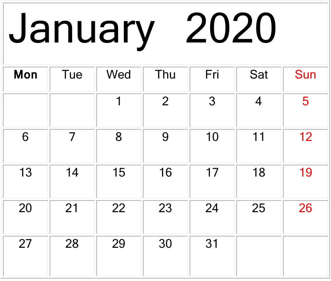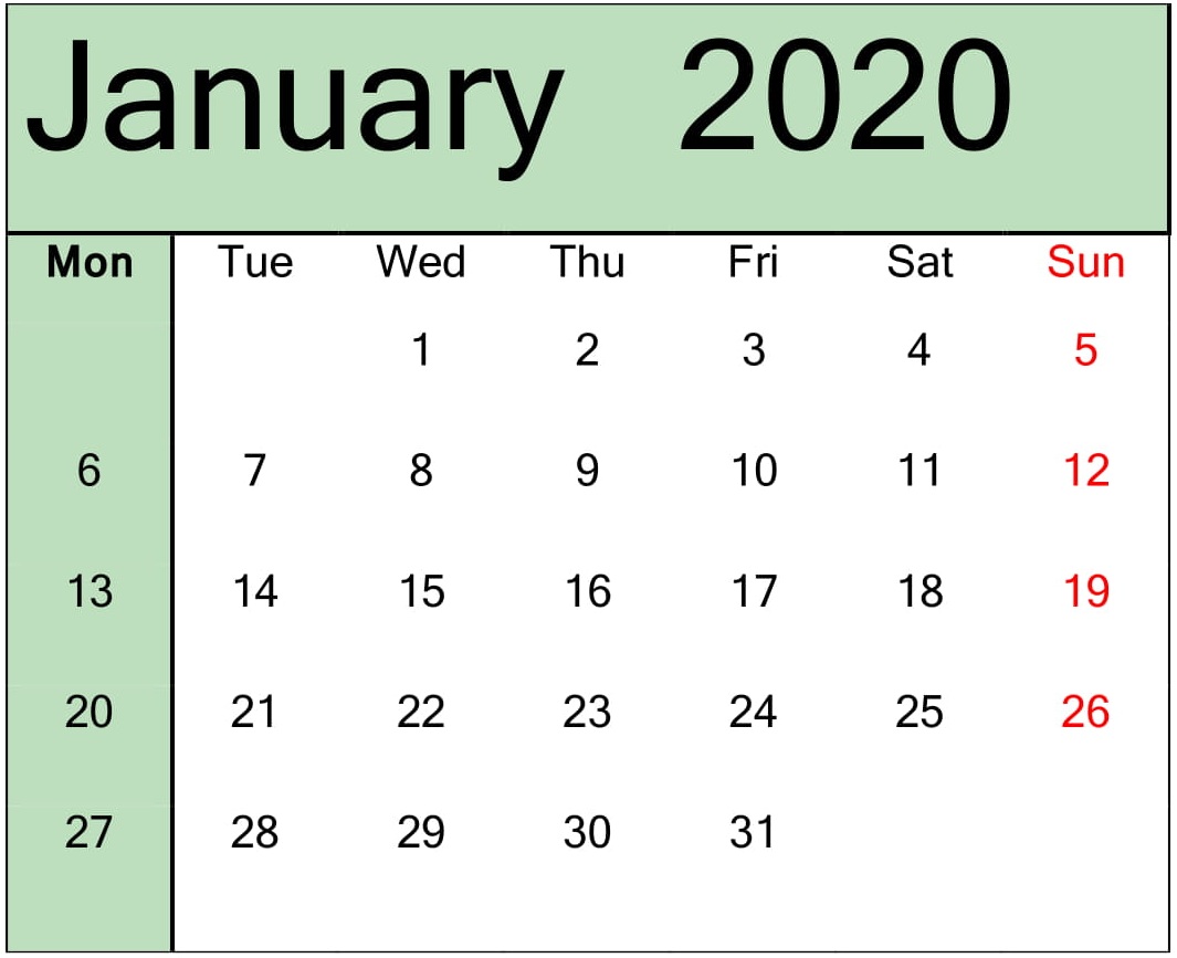Each year, we have a new plan for new targets that need to be completed during specific courses of time. In a simple step, you can download a page printable for 2020 calendar. You can choose them which format you want, three formats are available Word, Excel and PDF formats. January Calendar Template 2020 has more options for calendar year-round.