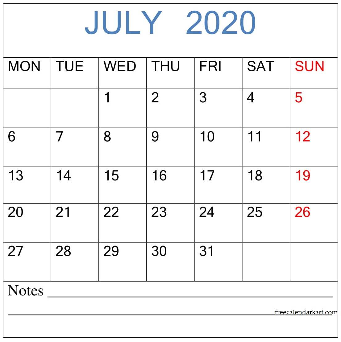 July 2020 Blank Calendar