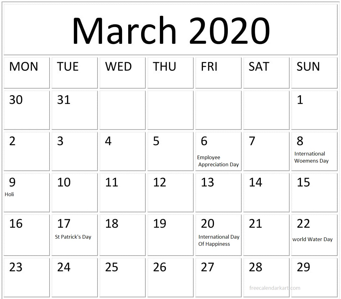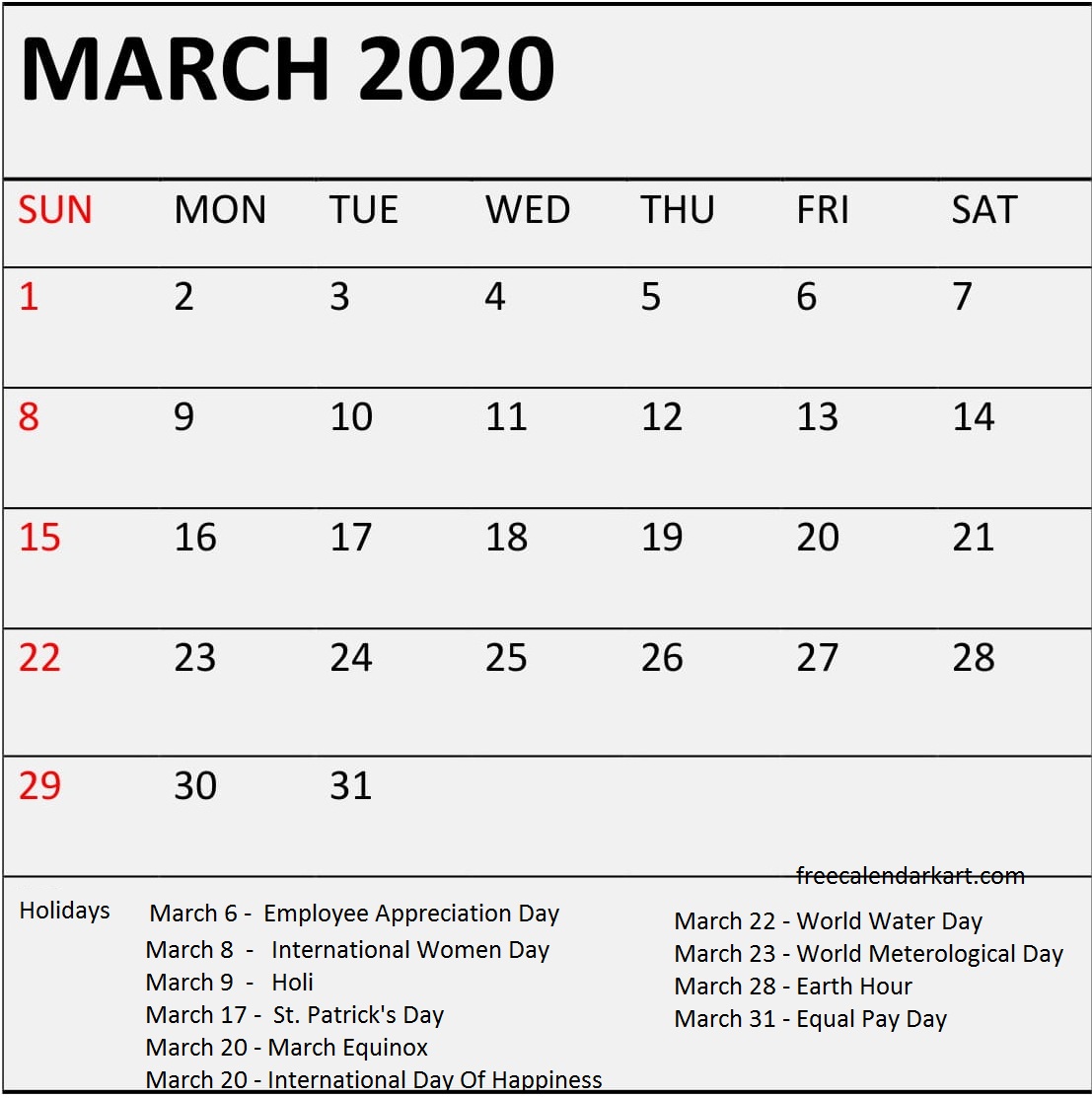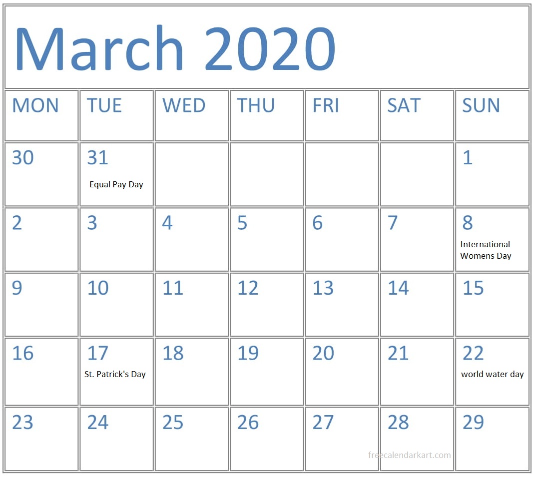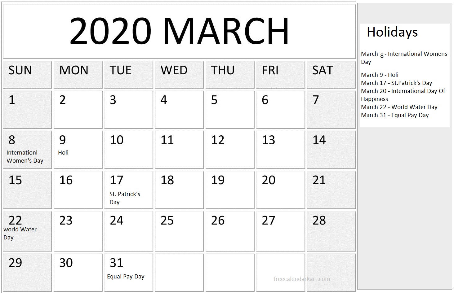 In the modern era, everyone wants to grow in their lives and they put extra efforts into this. But they face lots of problems in their lives. They haven’t enough time to spend with family and the result gives them a high-stress level. They should take a break from regular life and make a plan for the holidays. March is the time to plan the holidays. March 2020 Calendar With Holidays will help you in doing this. You can make a plan with the calendar template.