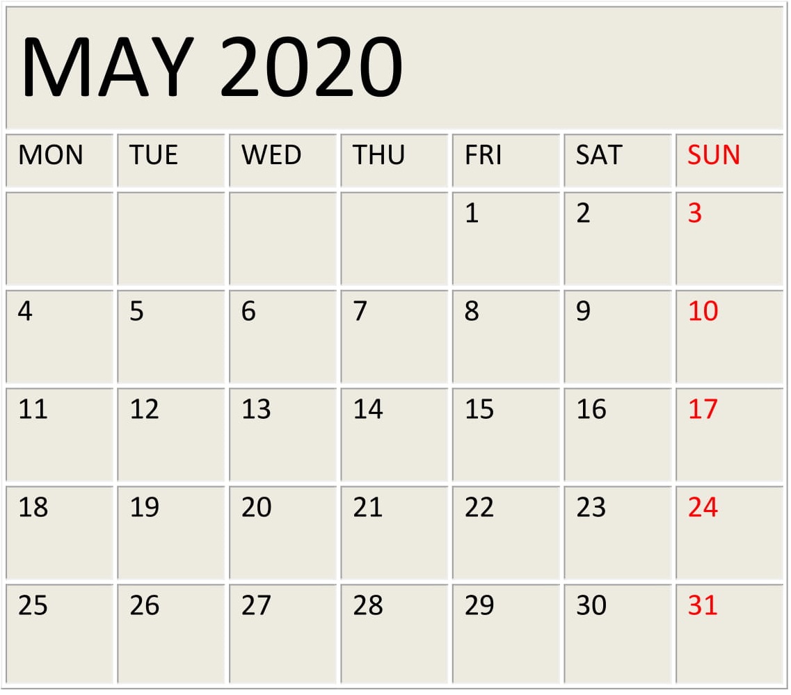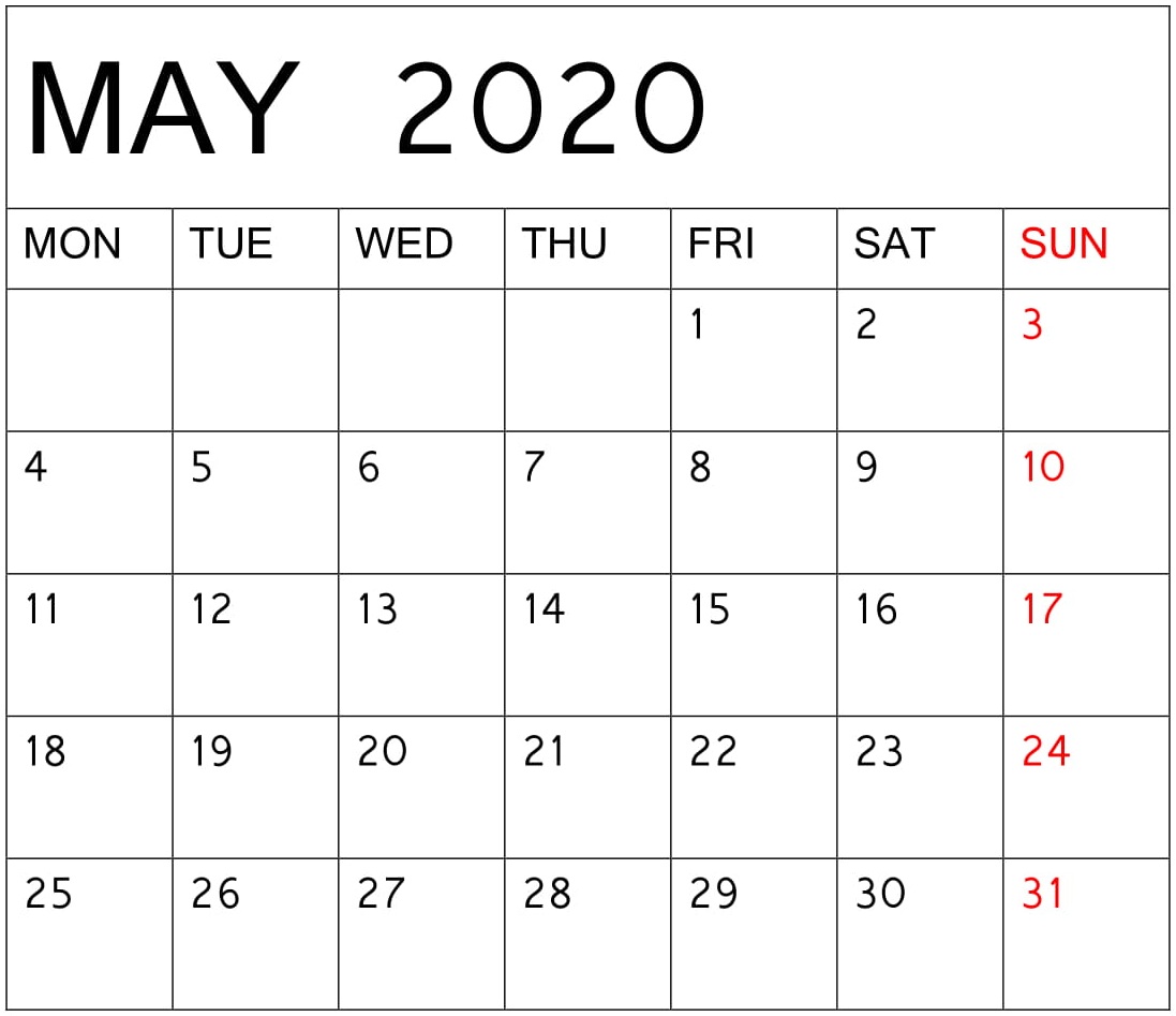 2020 May Calendar