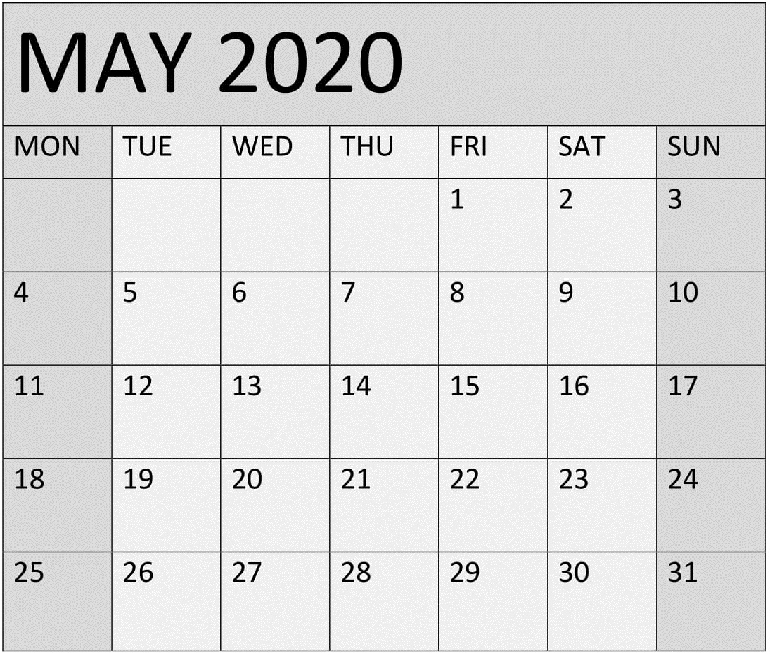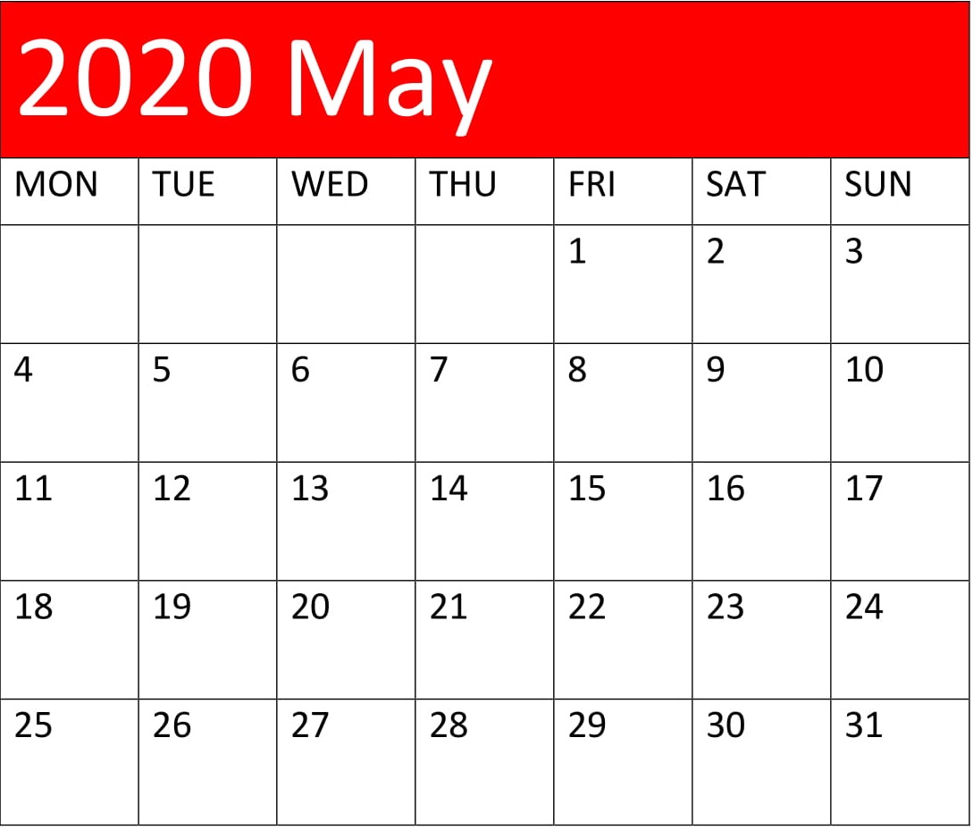 May Calendar 2020
