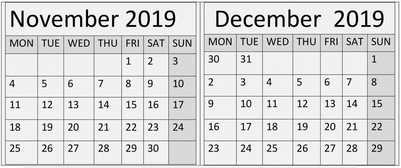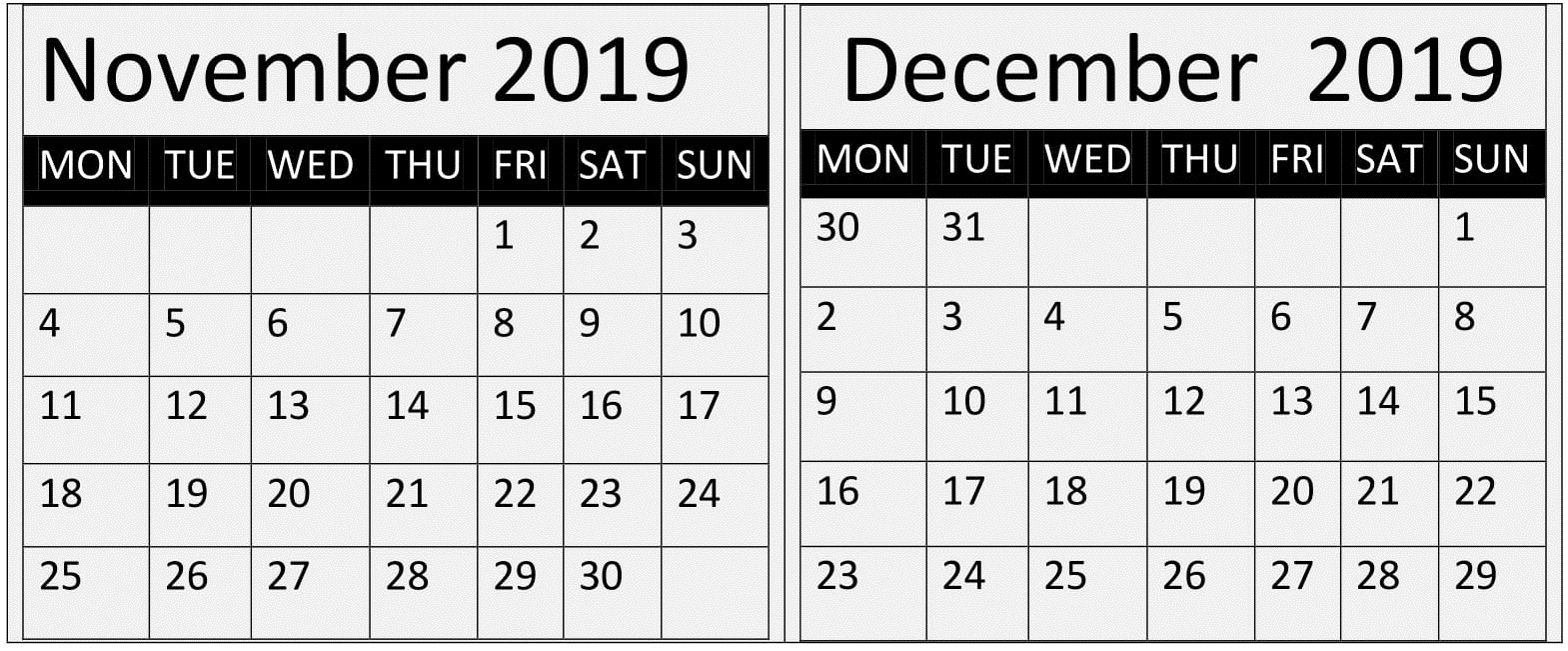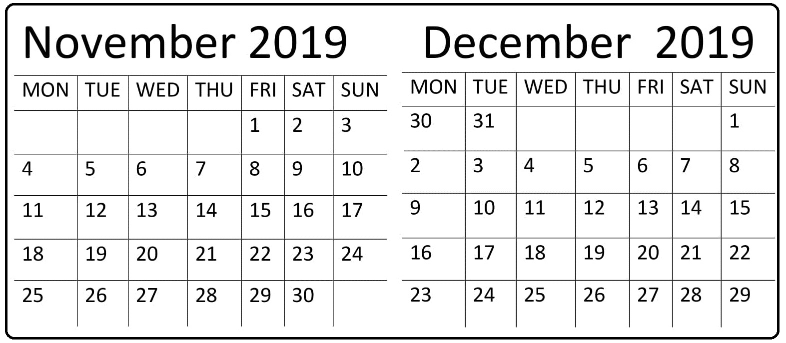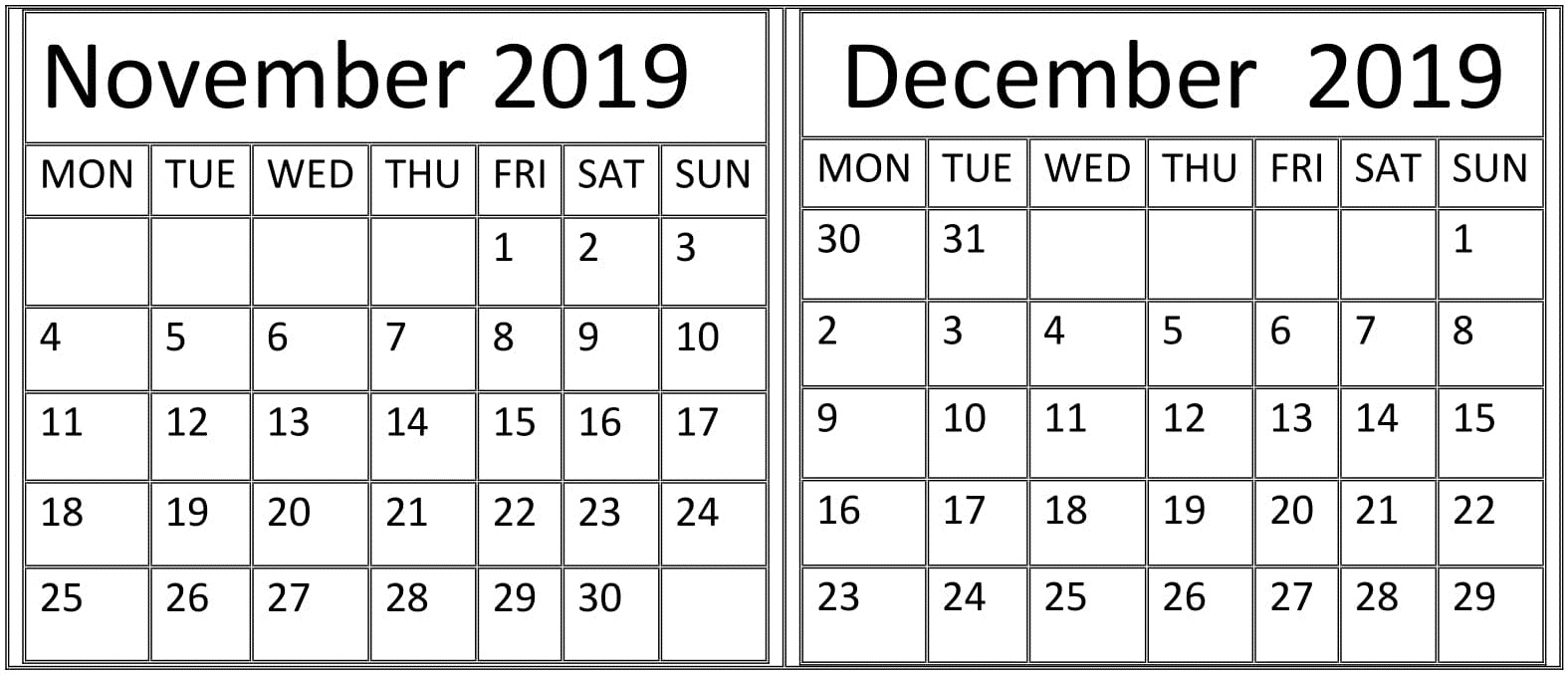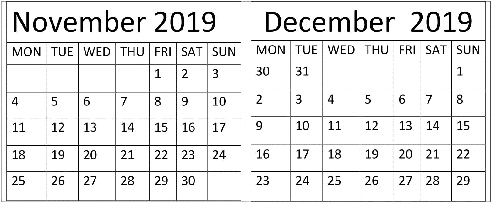 Today we have come with the latest and new version of the calendar. Most of the people search the holidays and festivals. But now you need not worry as we are providing a good collection of the calendar template. Here you get two-month calendar November December 2019 Calendar.