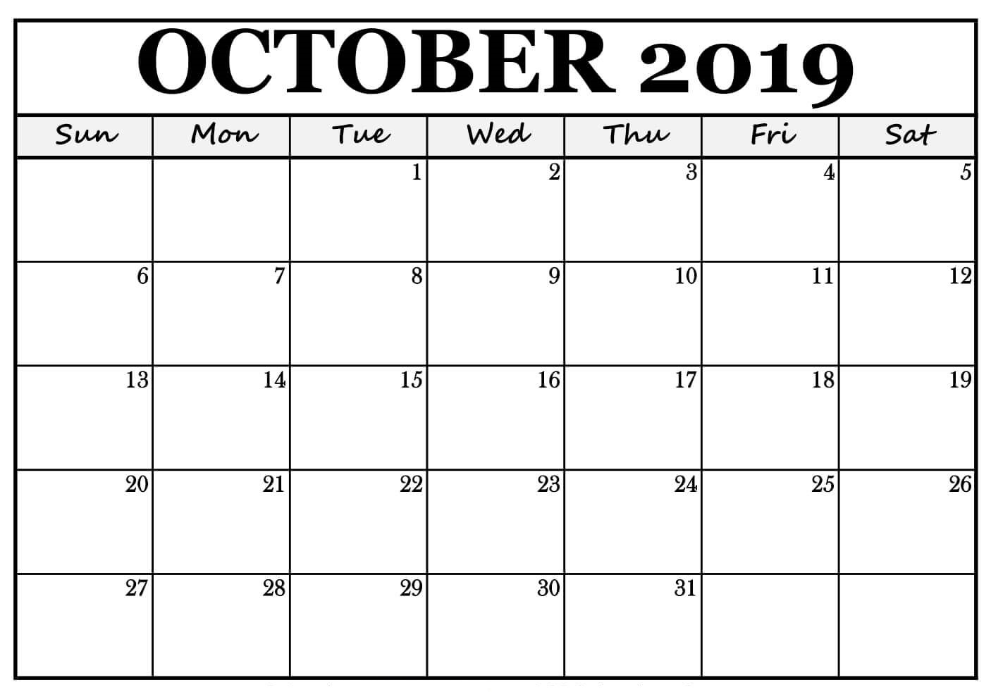 Blank October 2019 Calendar