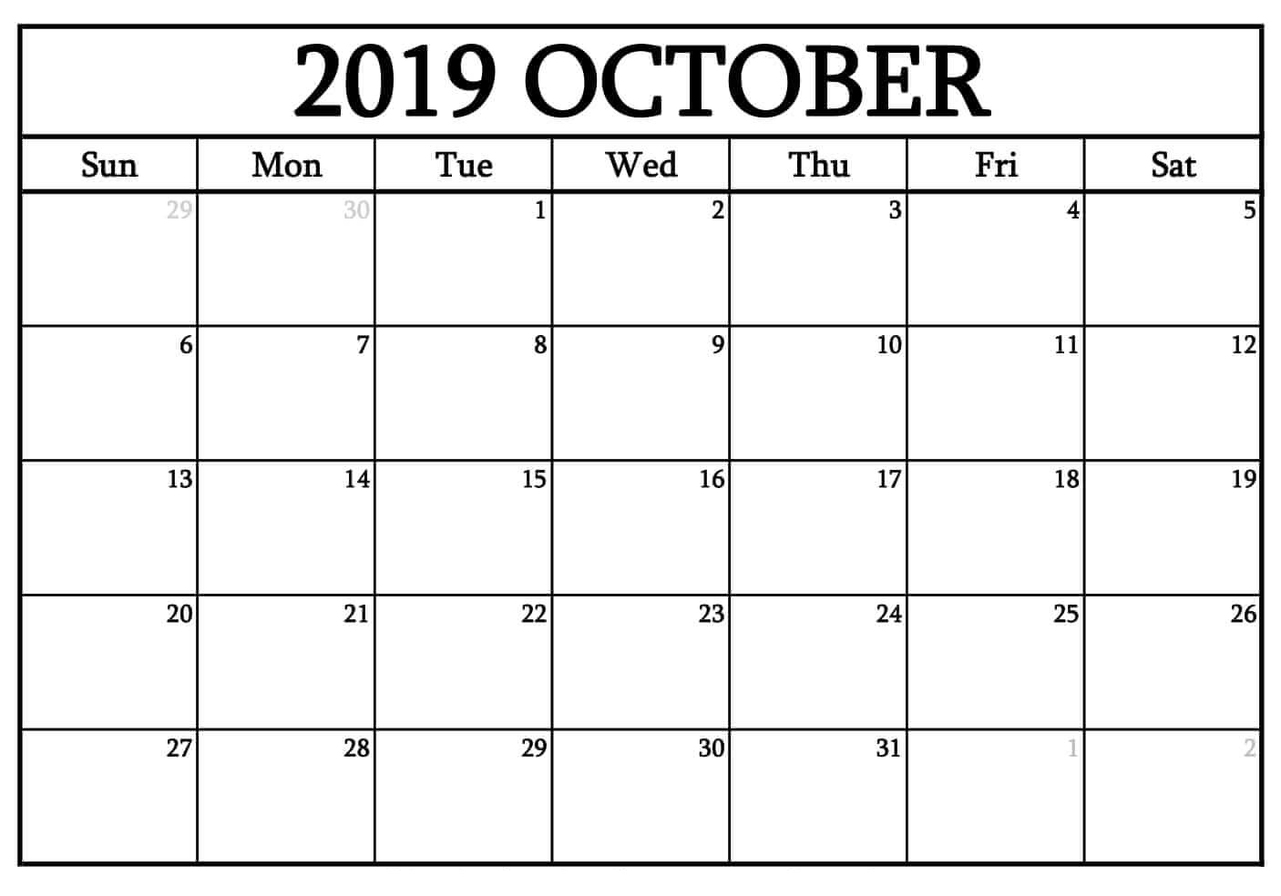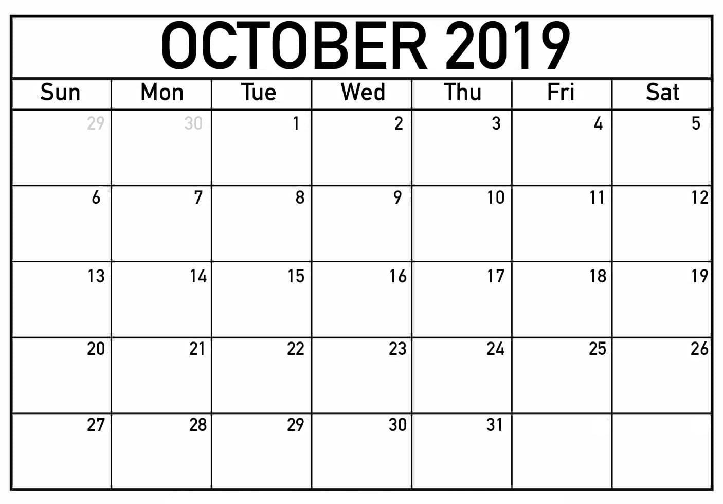 October Calendar 2019 Printable