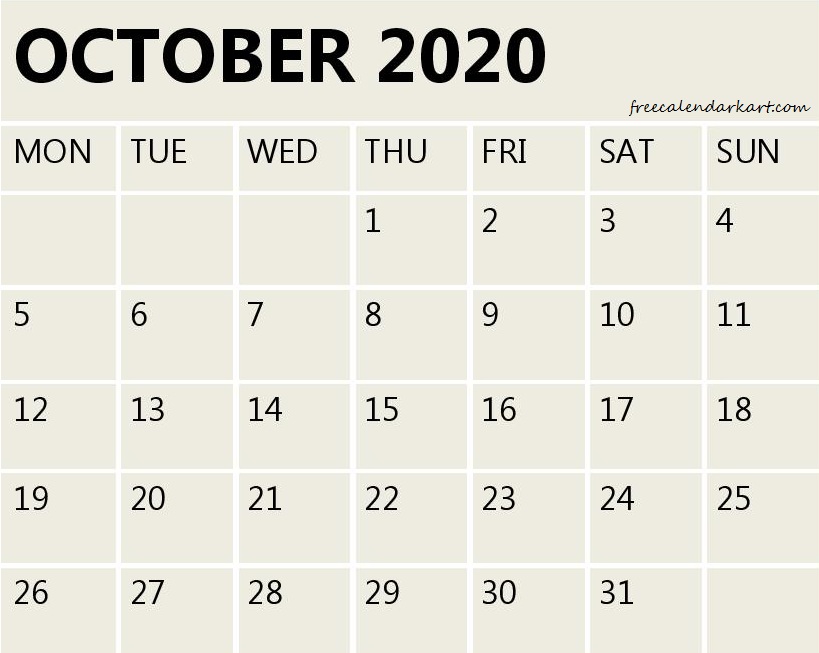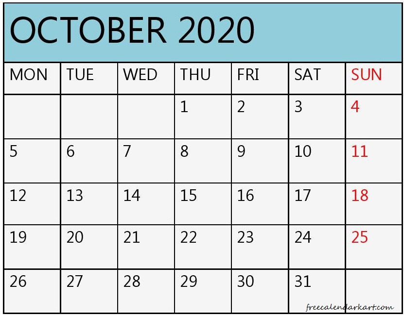 October 2020 Calendar Printable