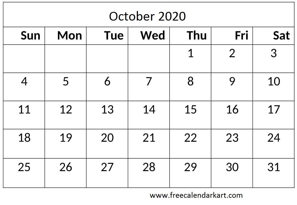 October 2020 Calendar With Holidays