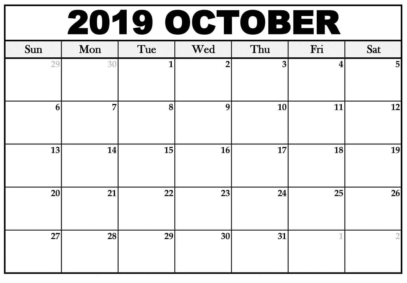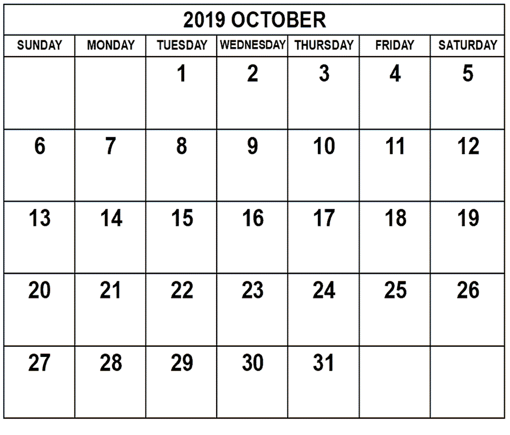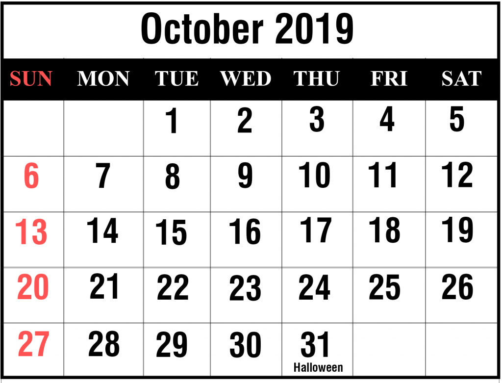 2019 October Calendar