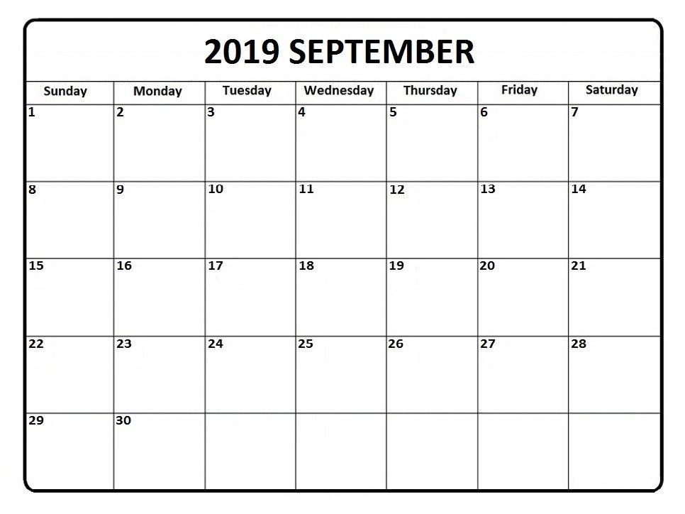 September 2019 Calendar Printable