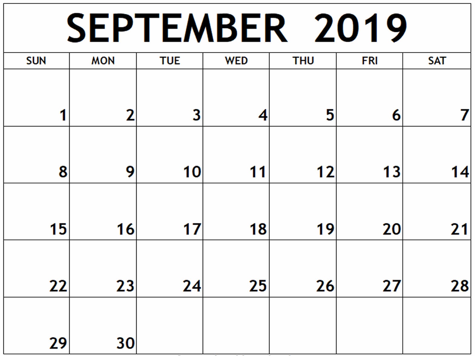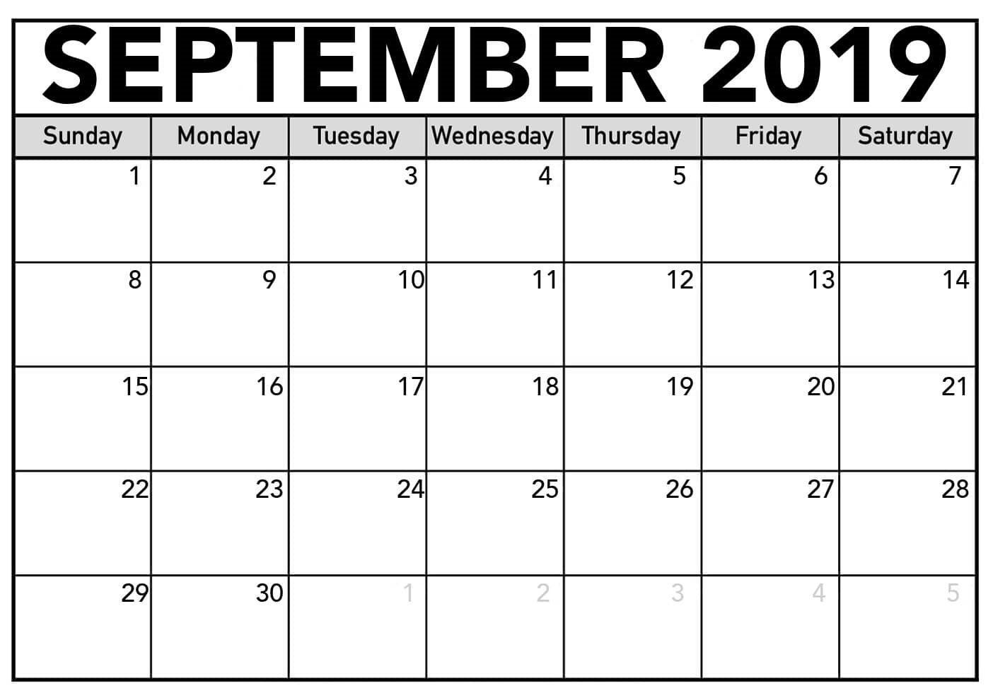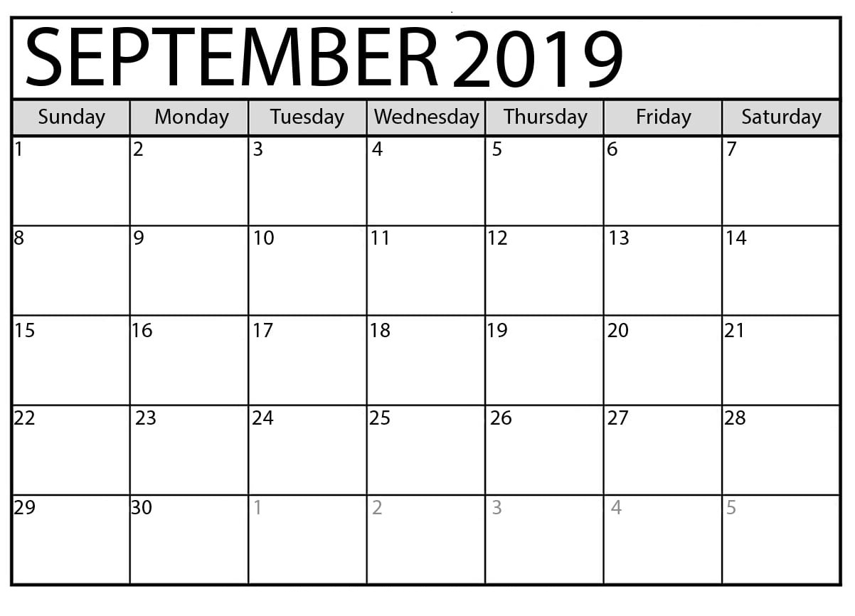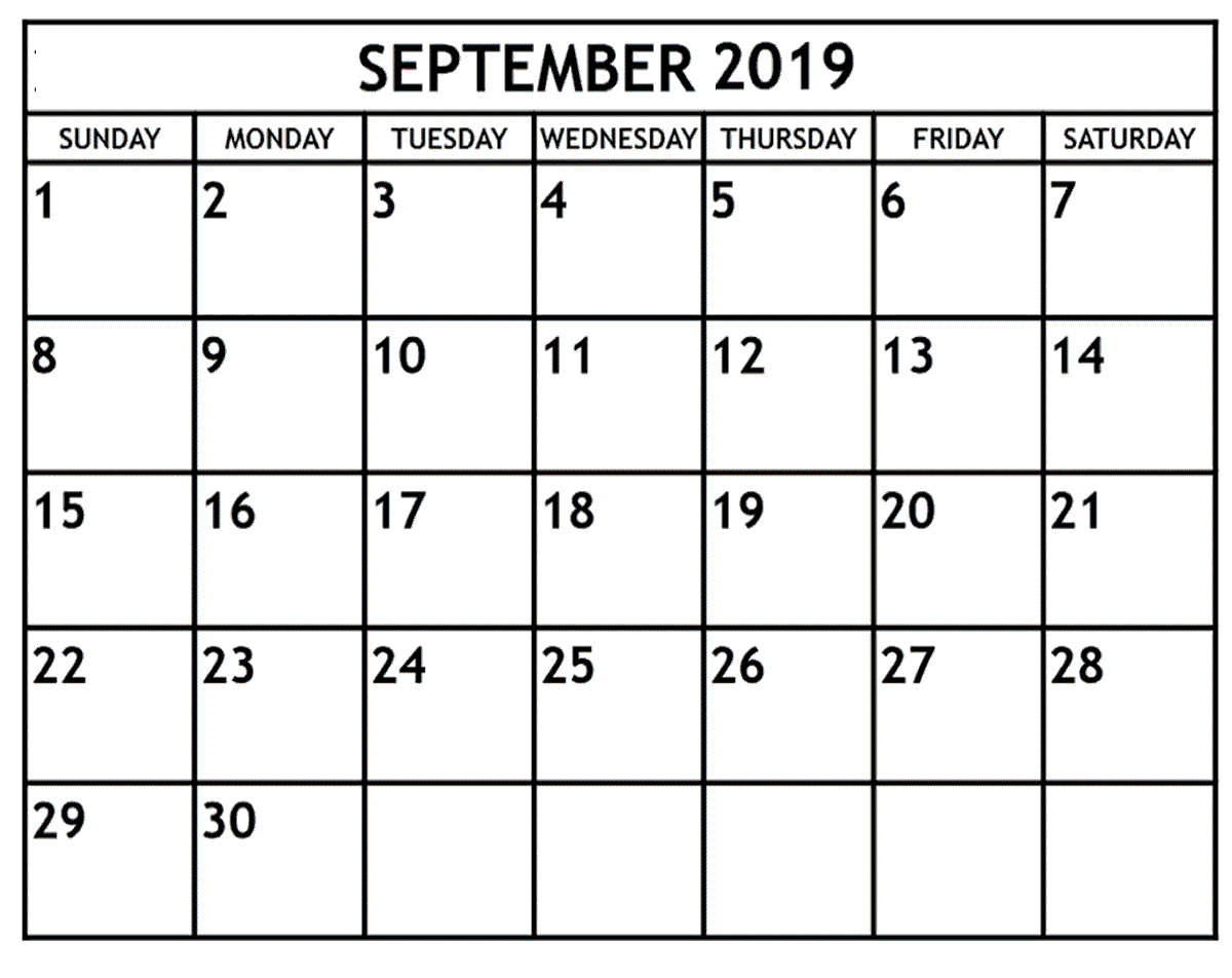 September 2019 Calendar Template