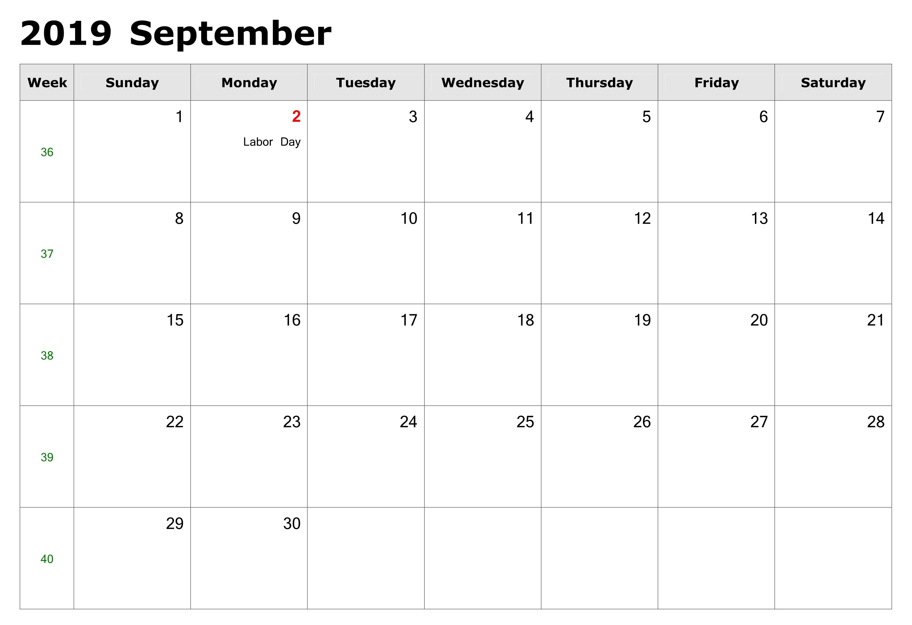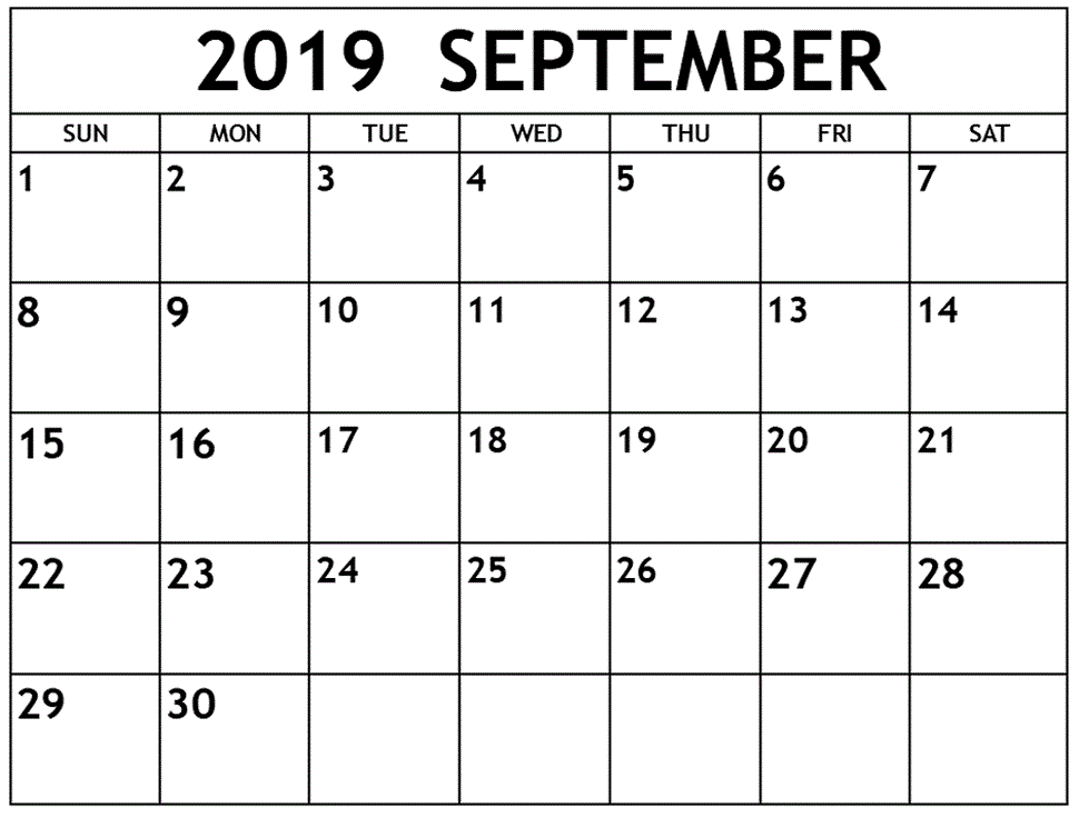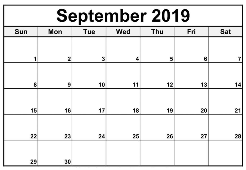 Free Printable September 2019 Calendar Template